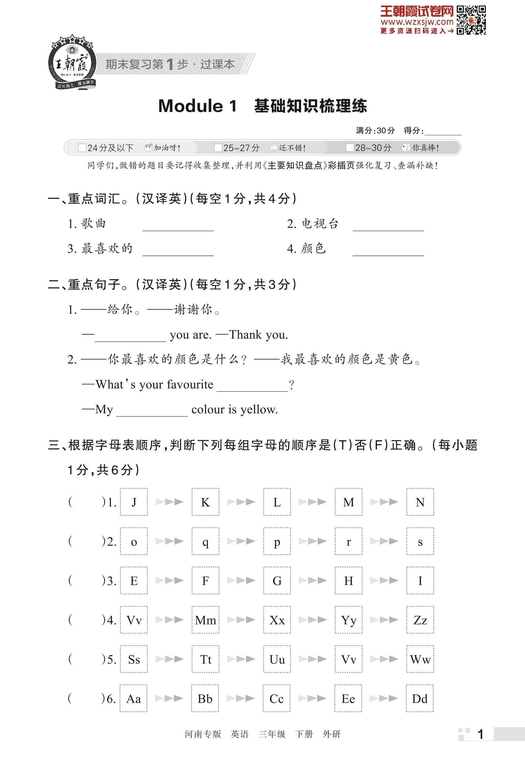 王朝霞期末过课本——Module 1 基础知识梳理练三年级下册英语(外研版)_R230428141329391