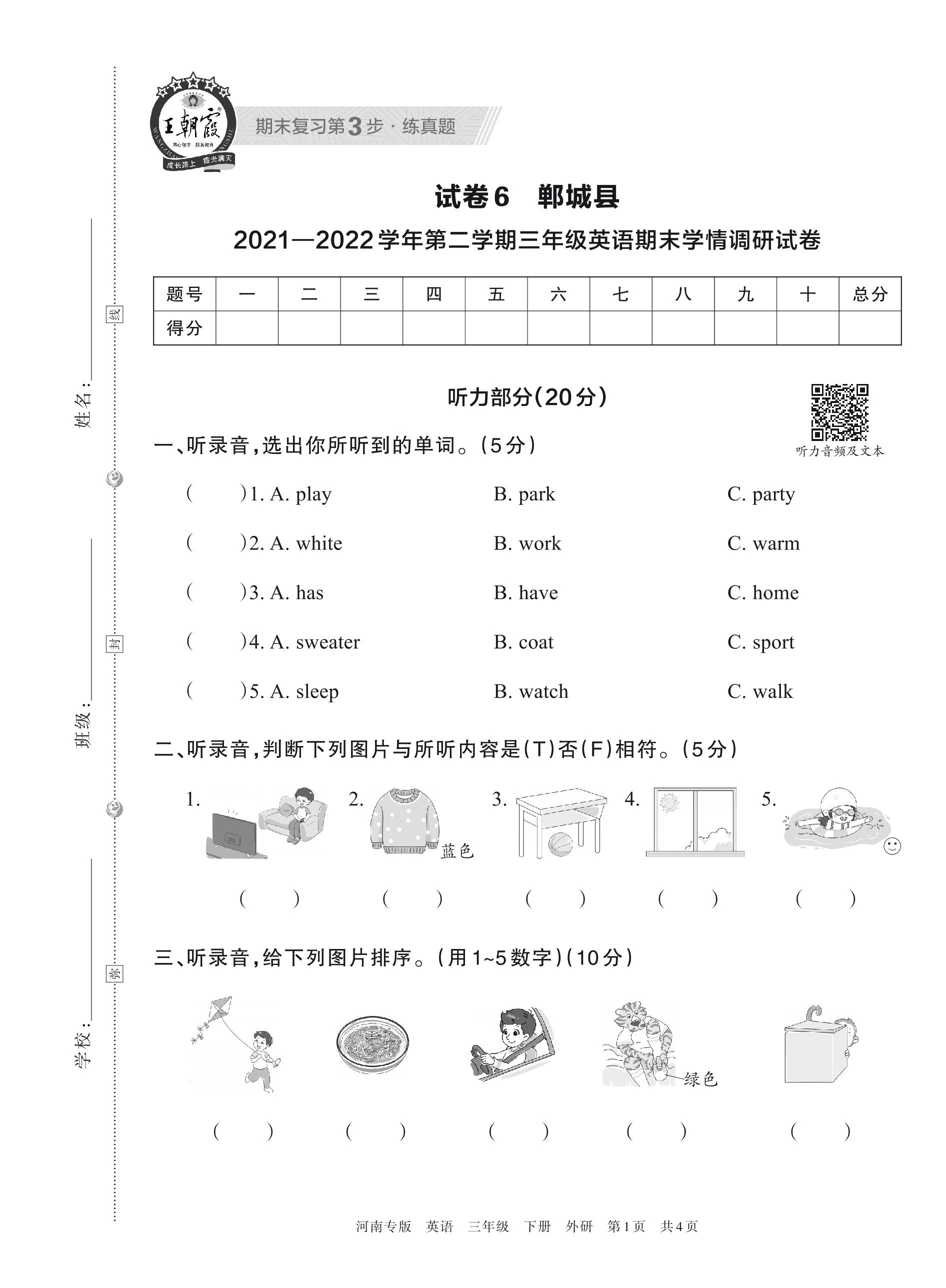 郸城县2021—2022学年第二学期三年级英语期末学情调研试卷(外研版)【6】