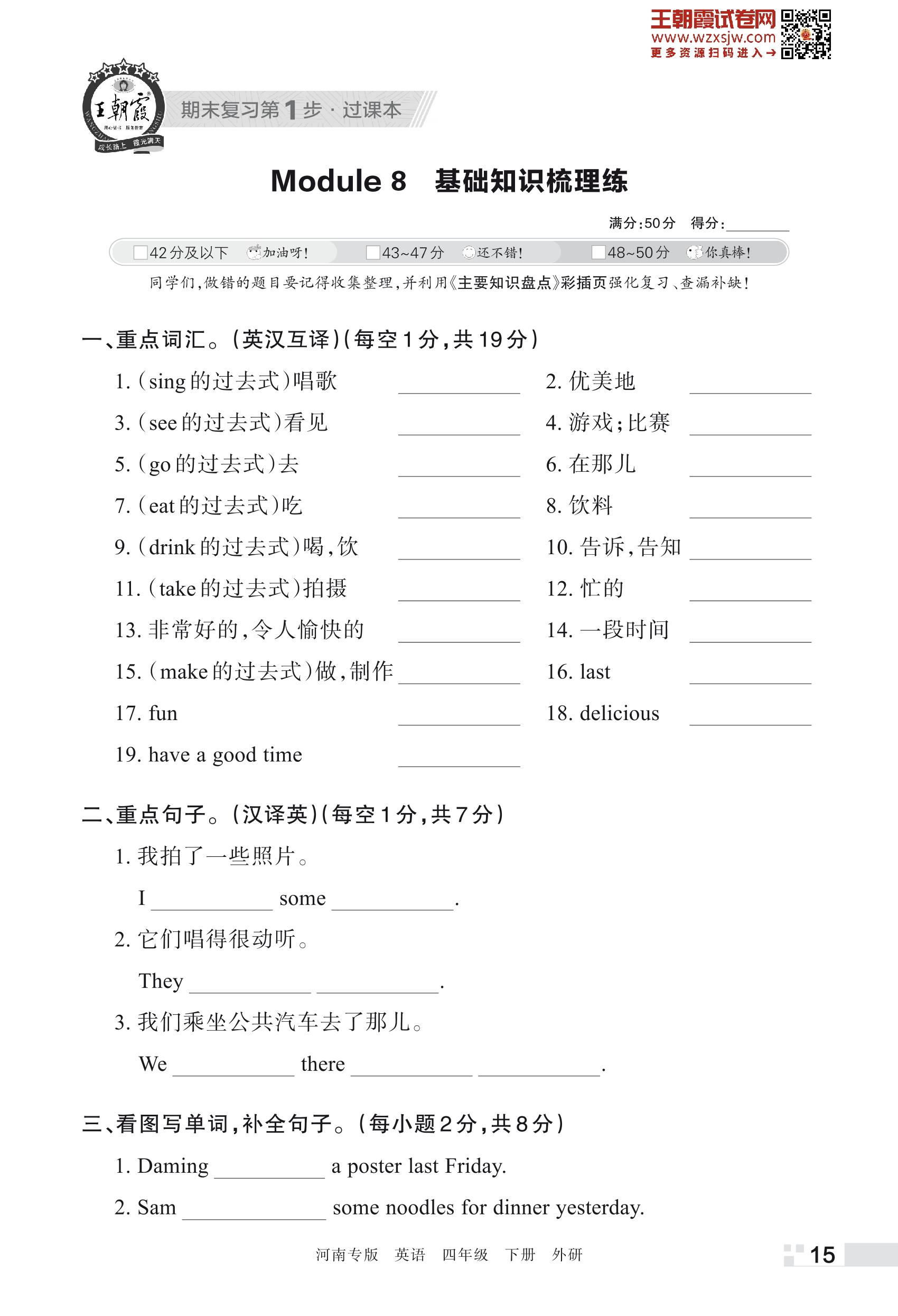 王朝霞期末过课本——Module 8 基础知识梳理练四年级下册英语(外研版)_R230428141925881
