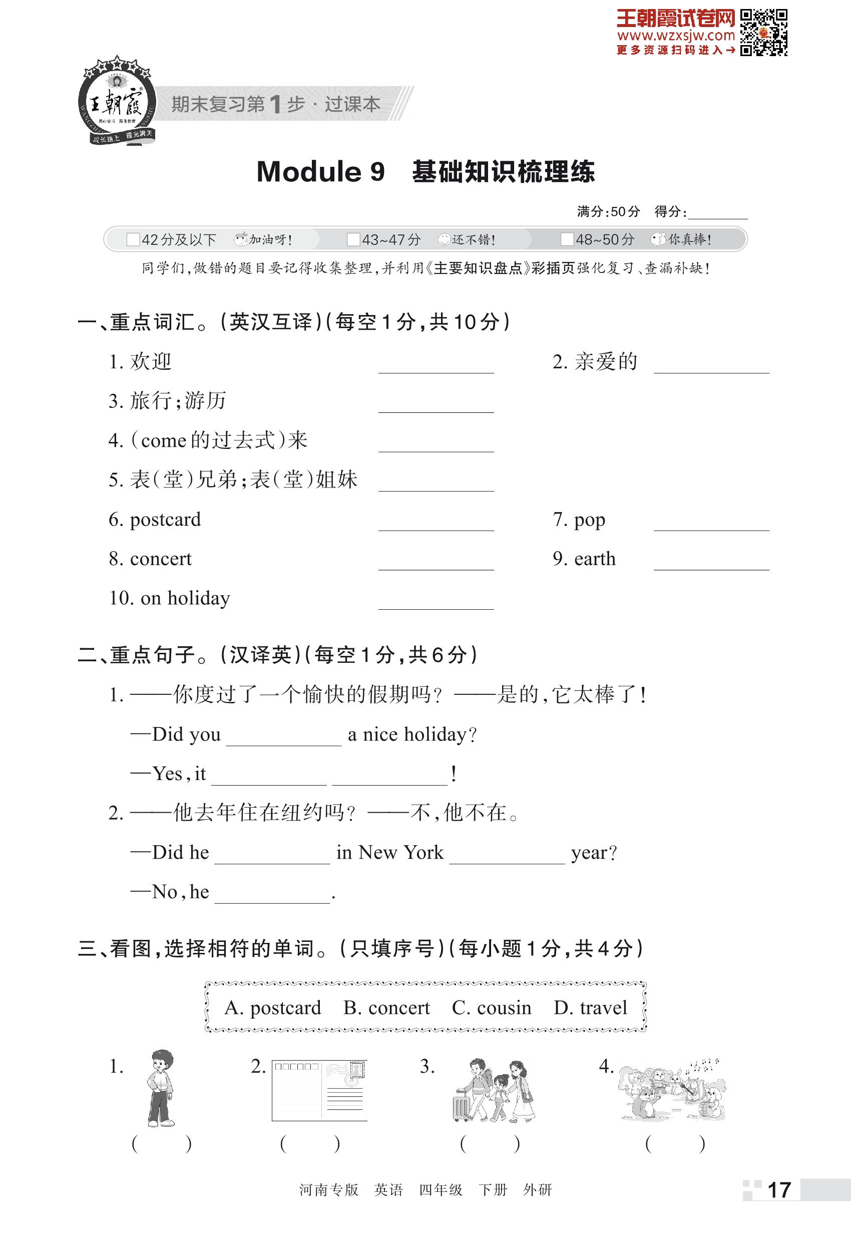 王朝霞期末过课本——Module 9 基础知识梳理练四年级下册英语(外研版)_R230428141926157