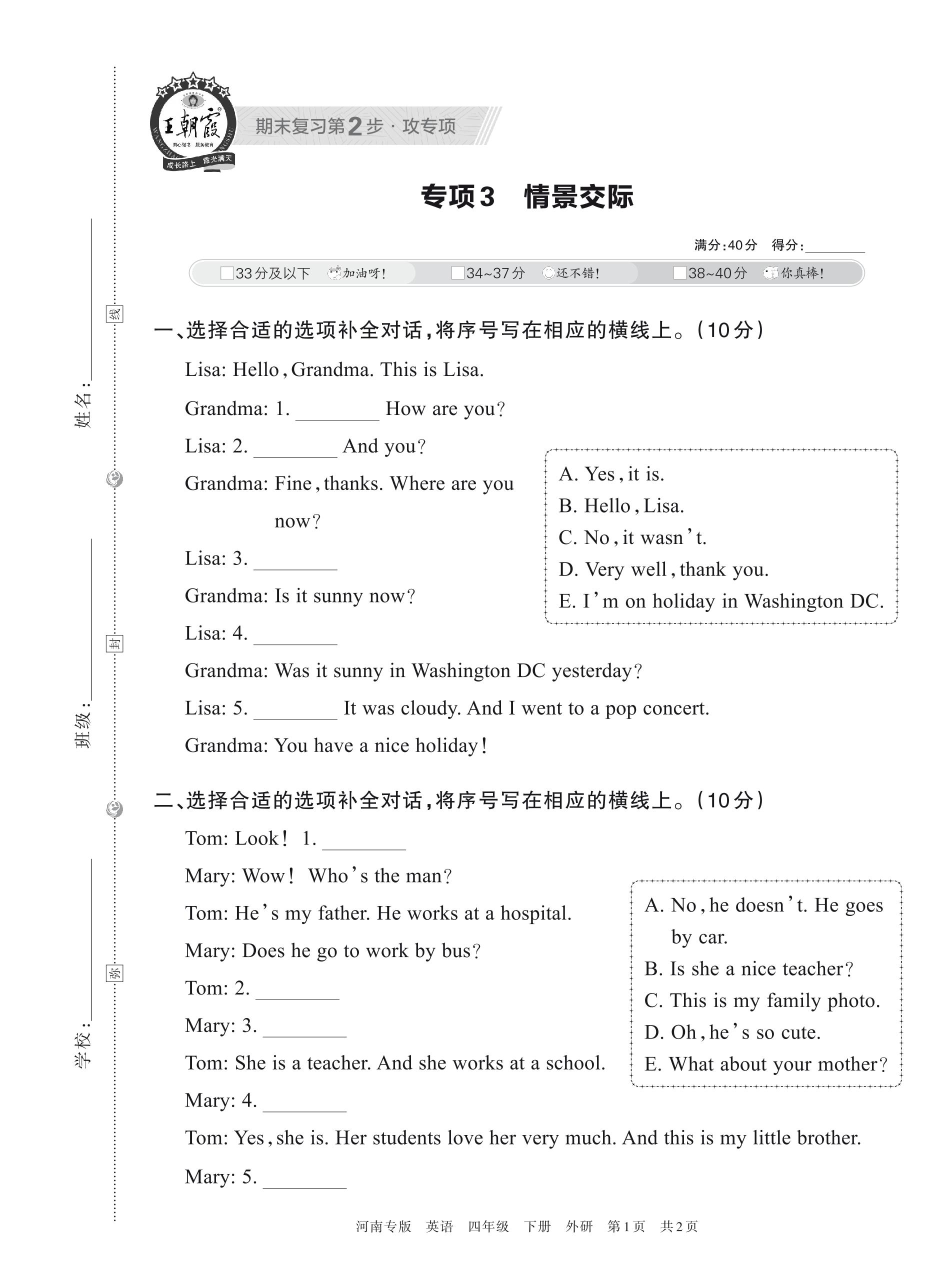 王朝霞期末专项卷——情景交际四年级下册英语(外研版)_R230428141926378【3】