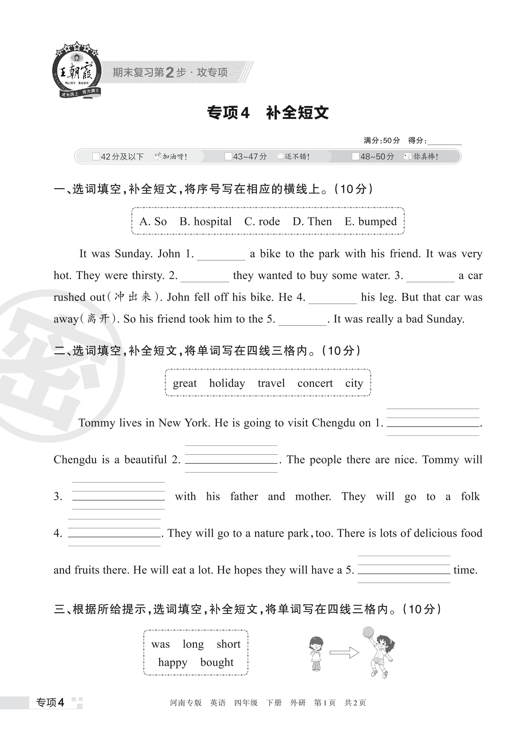 王朝霞期末专项卷——补全短文四年级下册英语(外研版)_R230428141926878【4】