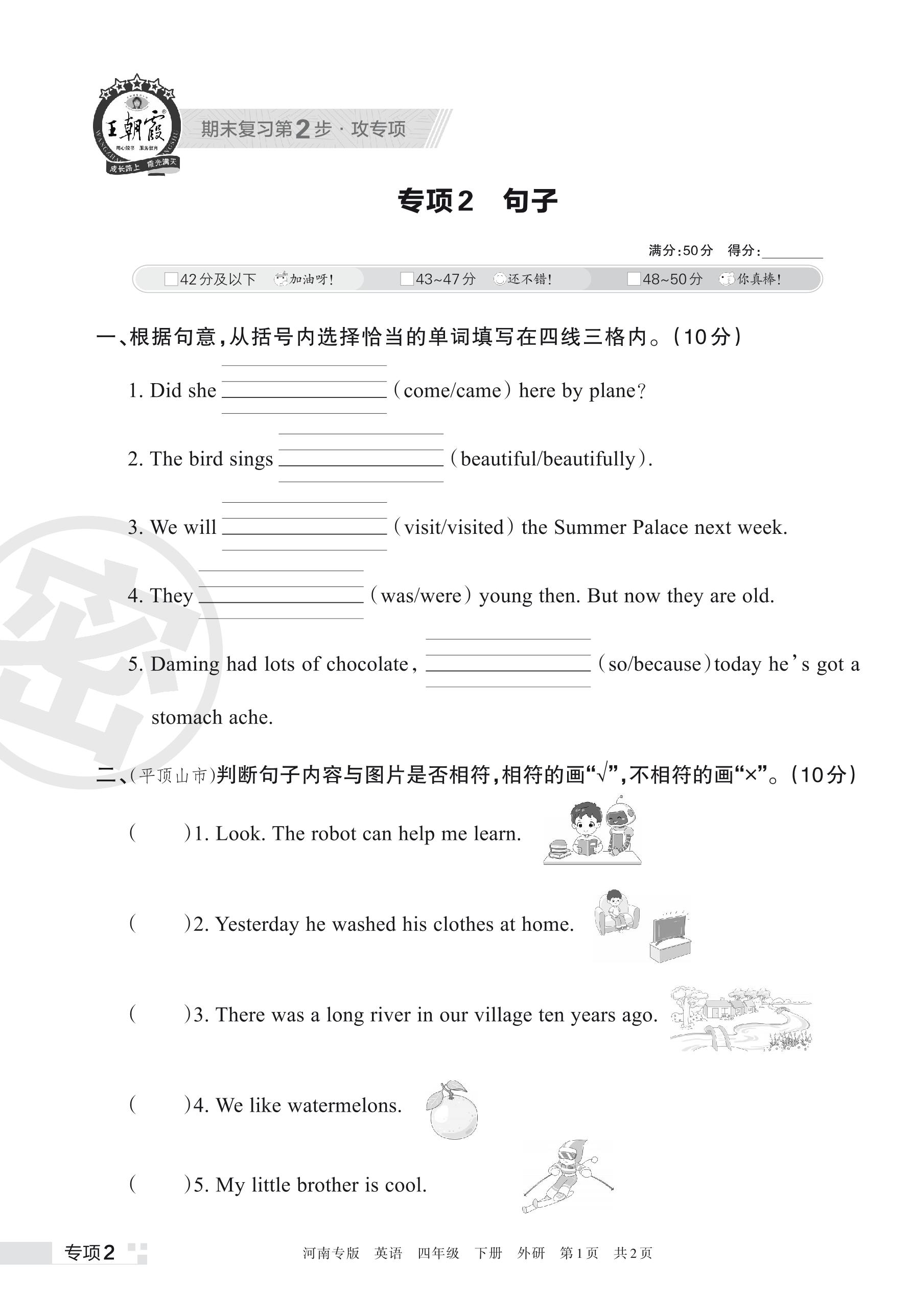 王朝霞期末专项卷——句子四年级下册英语(外研版)_R230428141926843【2】