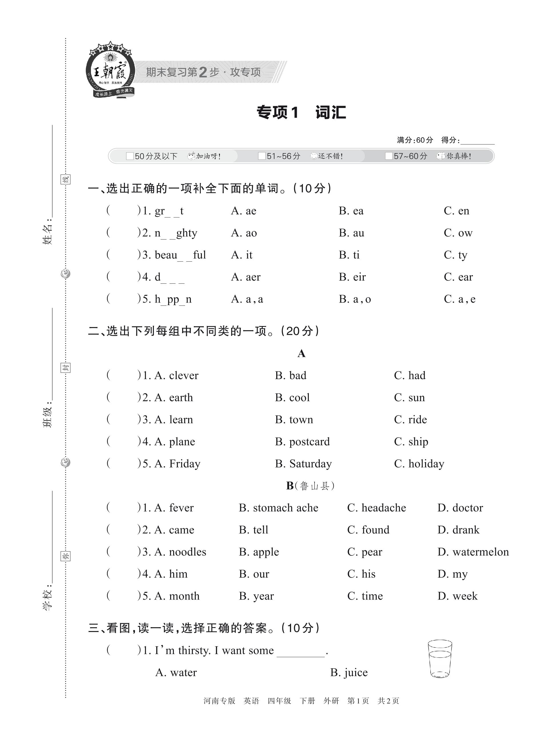 王朝霞期末专项卷——词汇四年级下册英语(外研版)_R230428141927198【1】