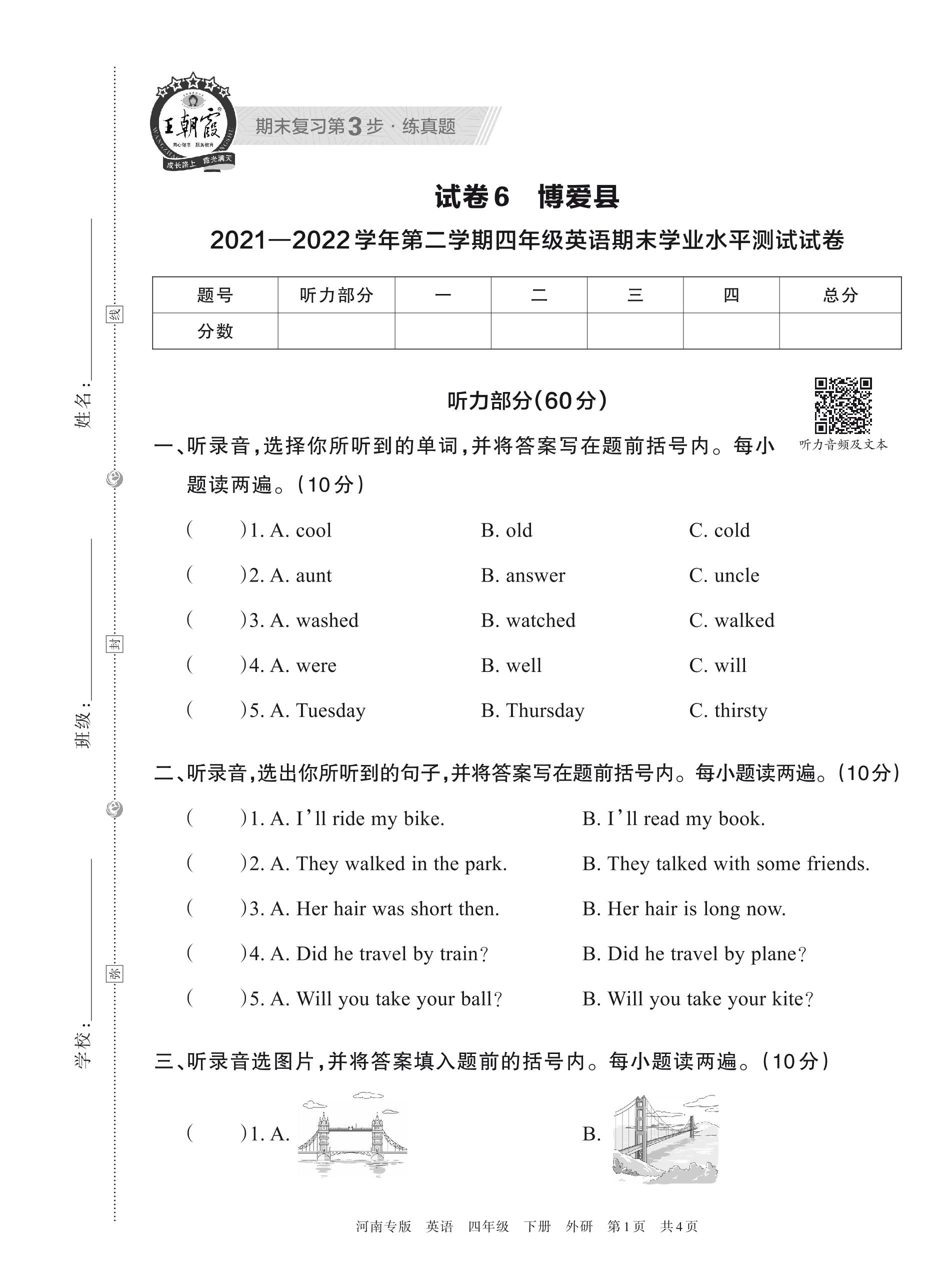 博爱县2021—2022学年第二学期四年级英语期末学业水平测试试卷(外研版)【6】