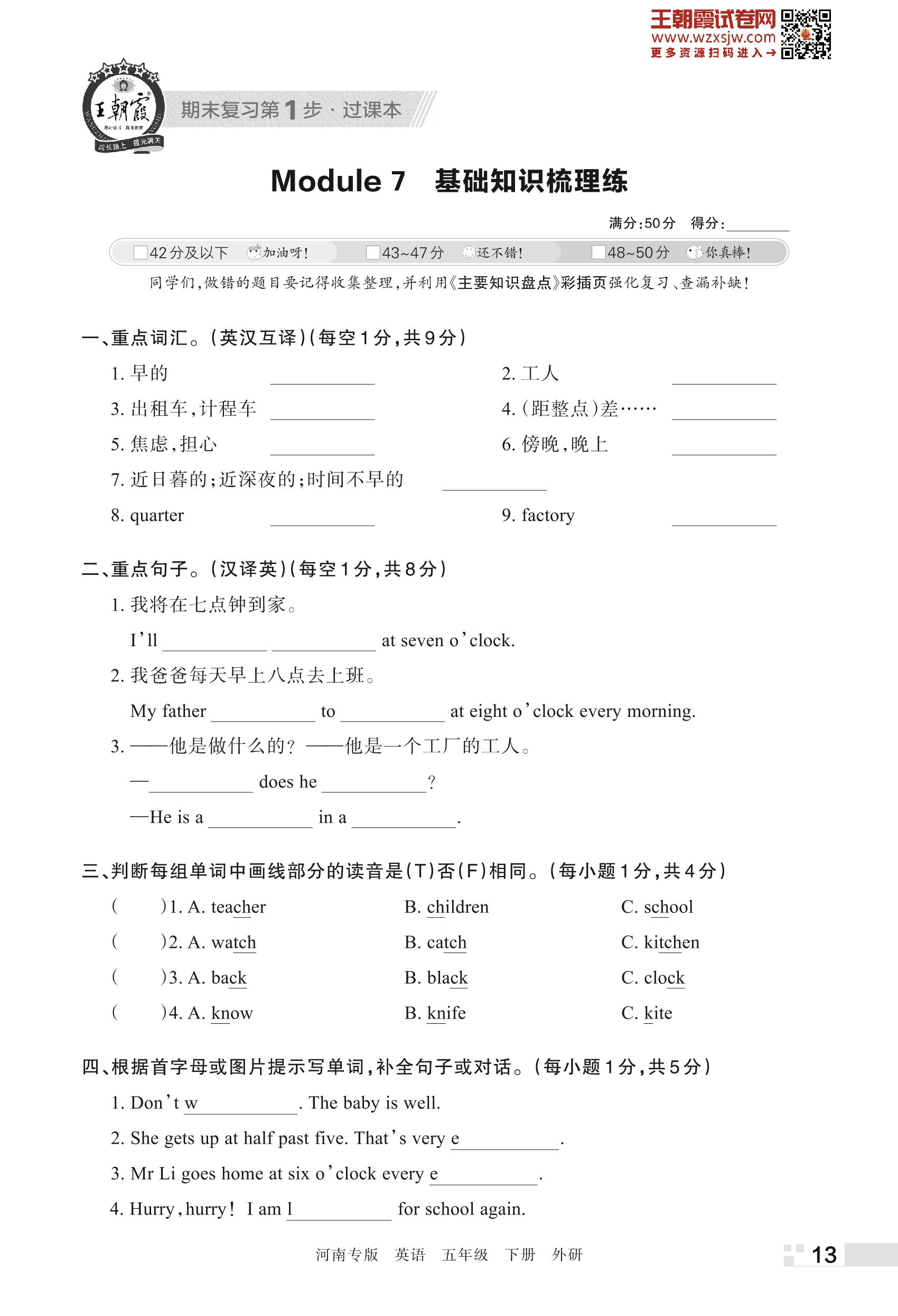 王朝霞期末过课本——Module 7 基础知识梳理练五年级下册英语(外研版)_R230428142551600