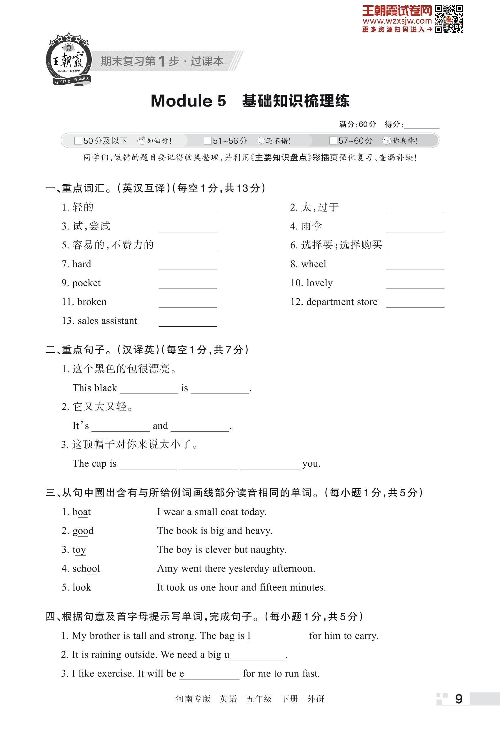 王朝霞期末过课本——Module 5 基础知识梳理练五年级下册英语(外研版)_R230428142552939