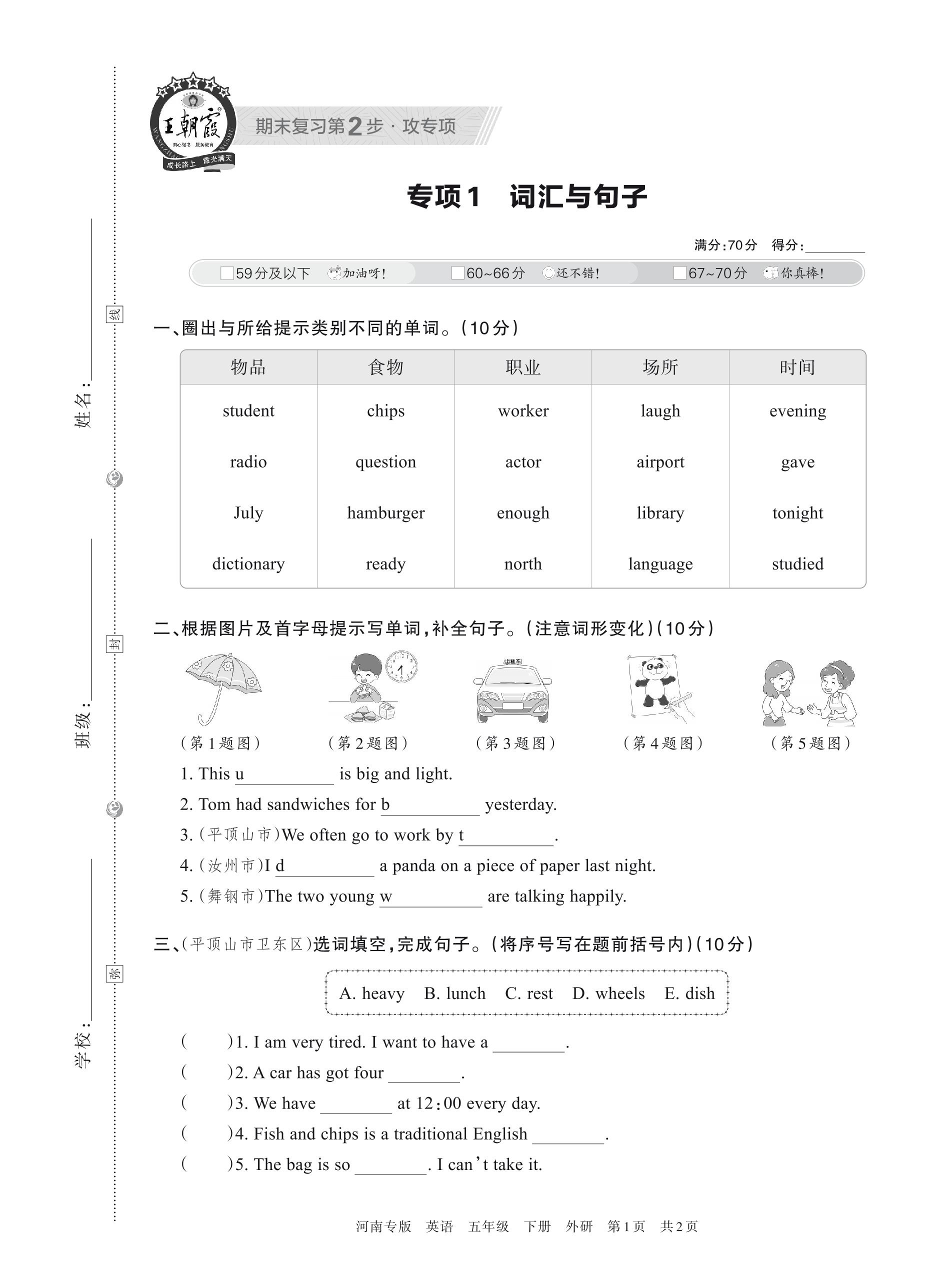 王朝霞期末专项卷——词汇与句子五年级下册英语(外研版)_R230428142553755【1】