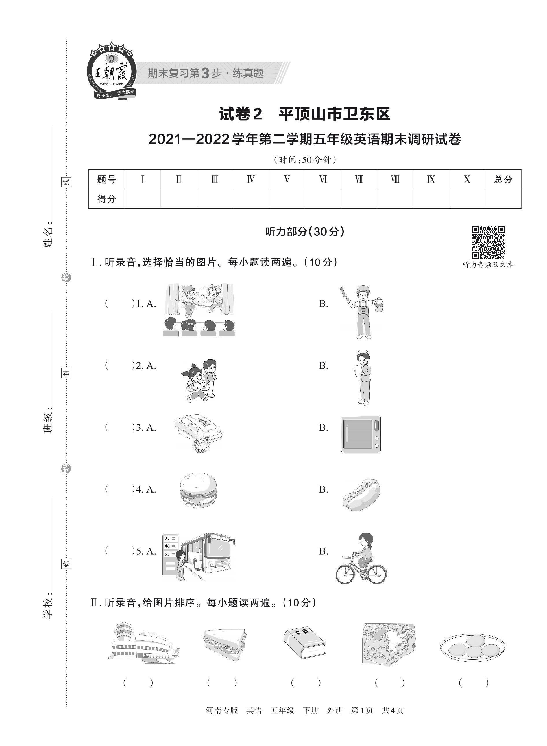 平顶山市卫东区2021—2022学年第二学期五年级英语期末调研试卷(外研版)【2】