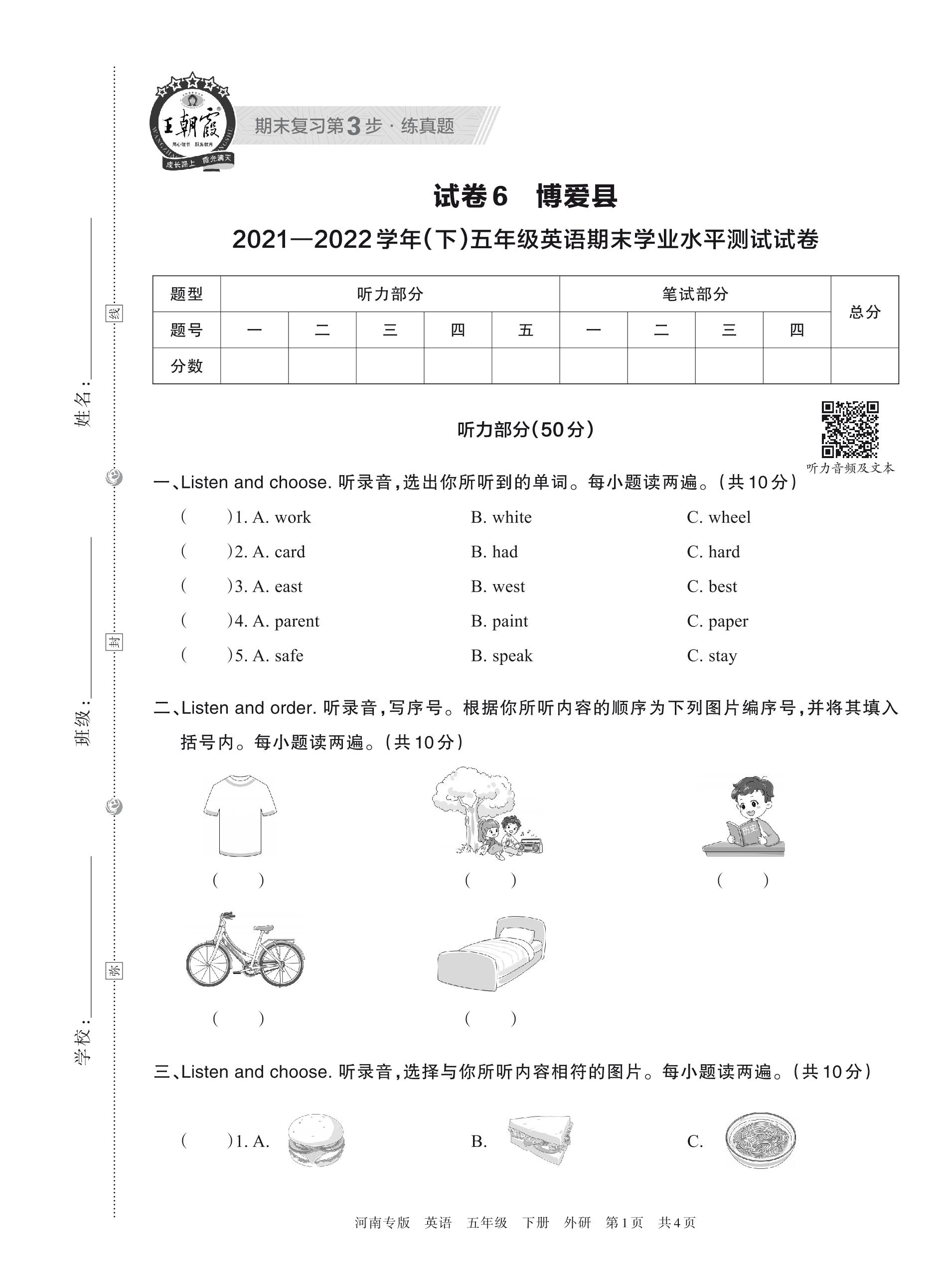 五年级英语外研版(三起始)下册期末卷