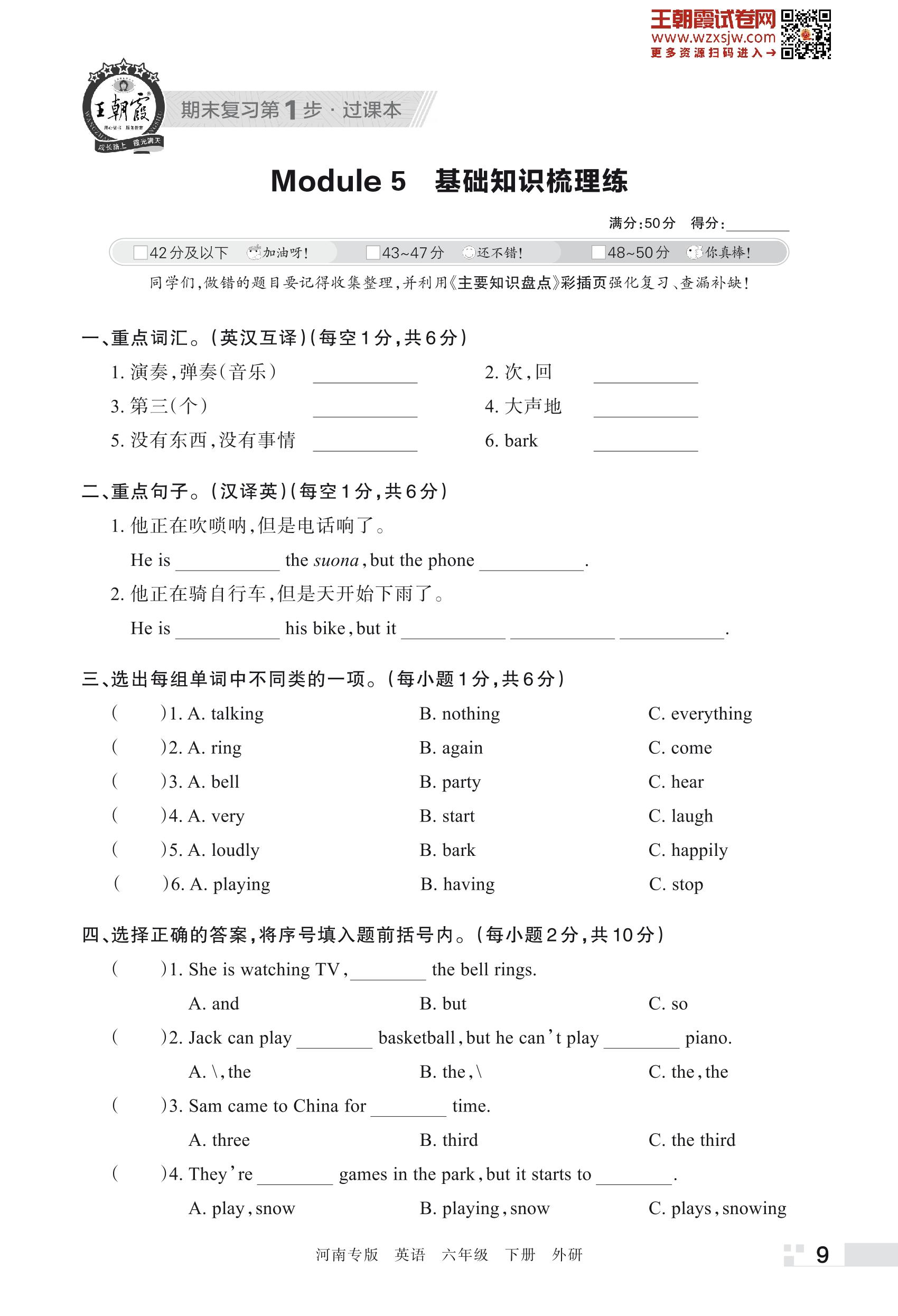 王朝霞期末过课本——Module 5 基础知识梳理练六年级下册英语(外研版)_R230428143221932