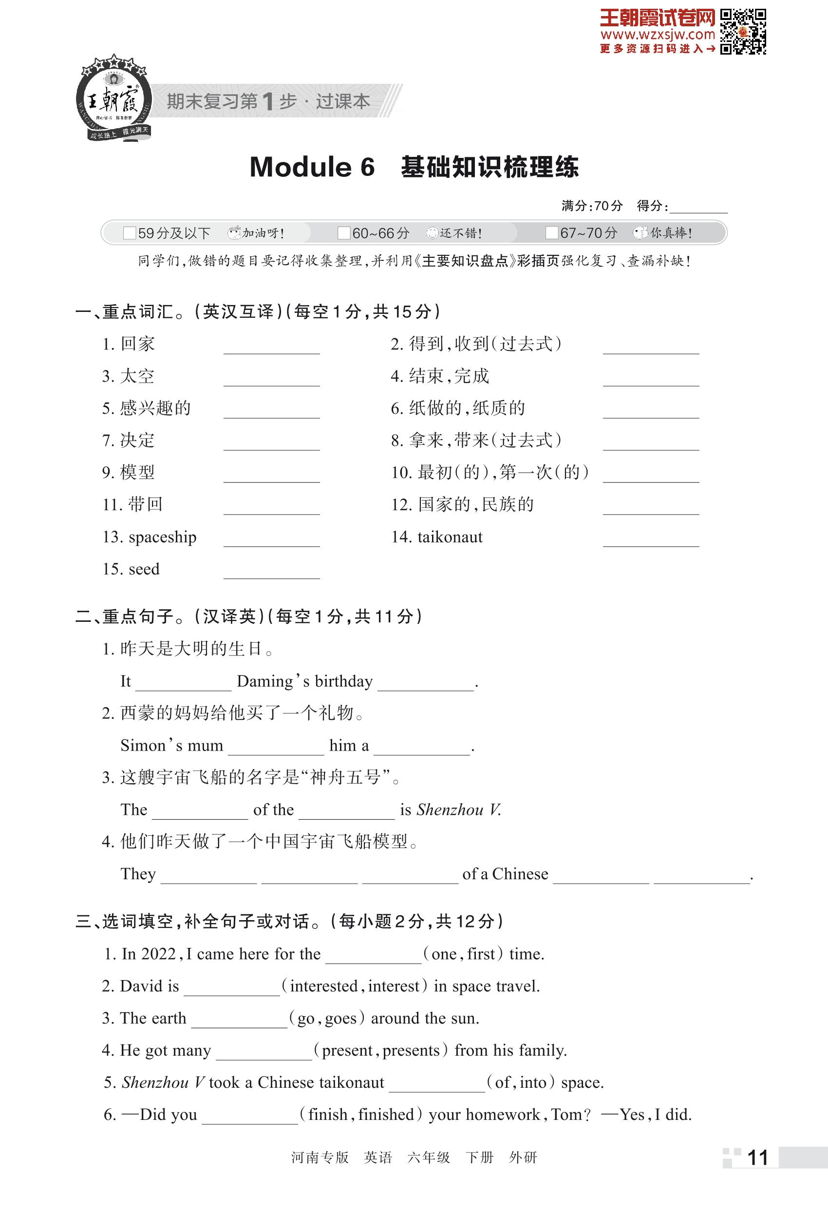 王朝霞期末过课本——Module 6 基础知识梳理练六年级下册英语(外研版)_R230428143221998