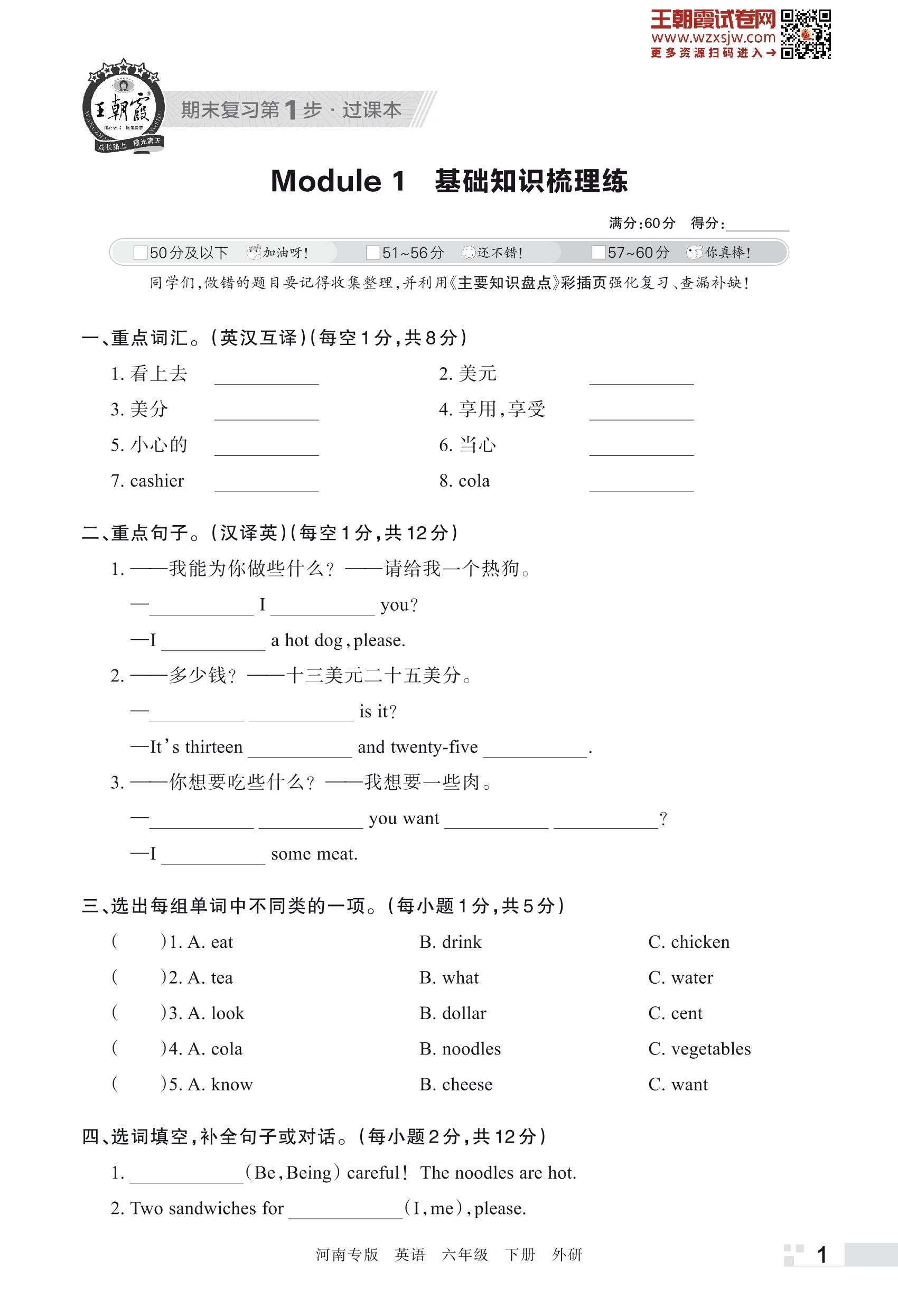 王朝霞期末过课本——Module 1 基础知识梳理练六年级下册英语(外研版)_R230428143221367