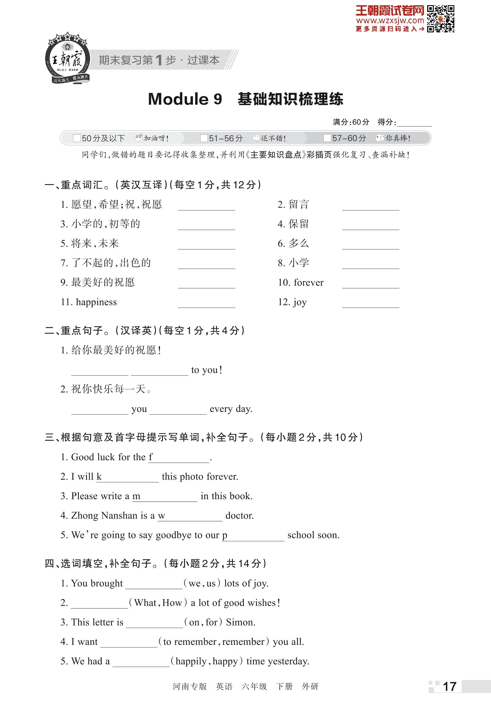 王朝霞期末过课本——Module 9 基础知识梳理练六年级下册英语(外研版)_R230428143221764