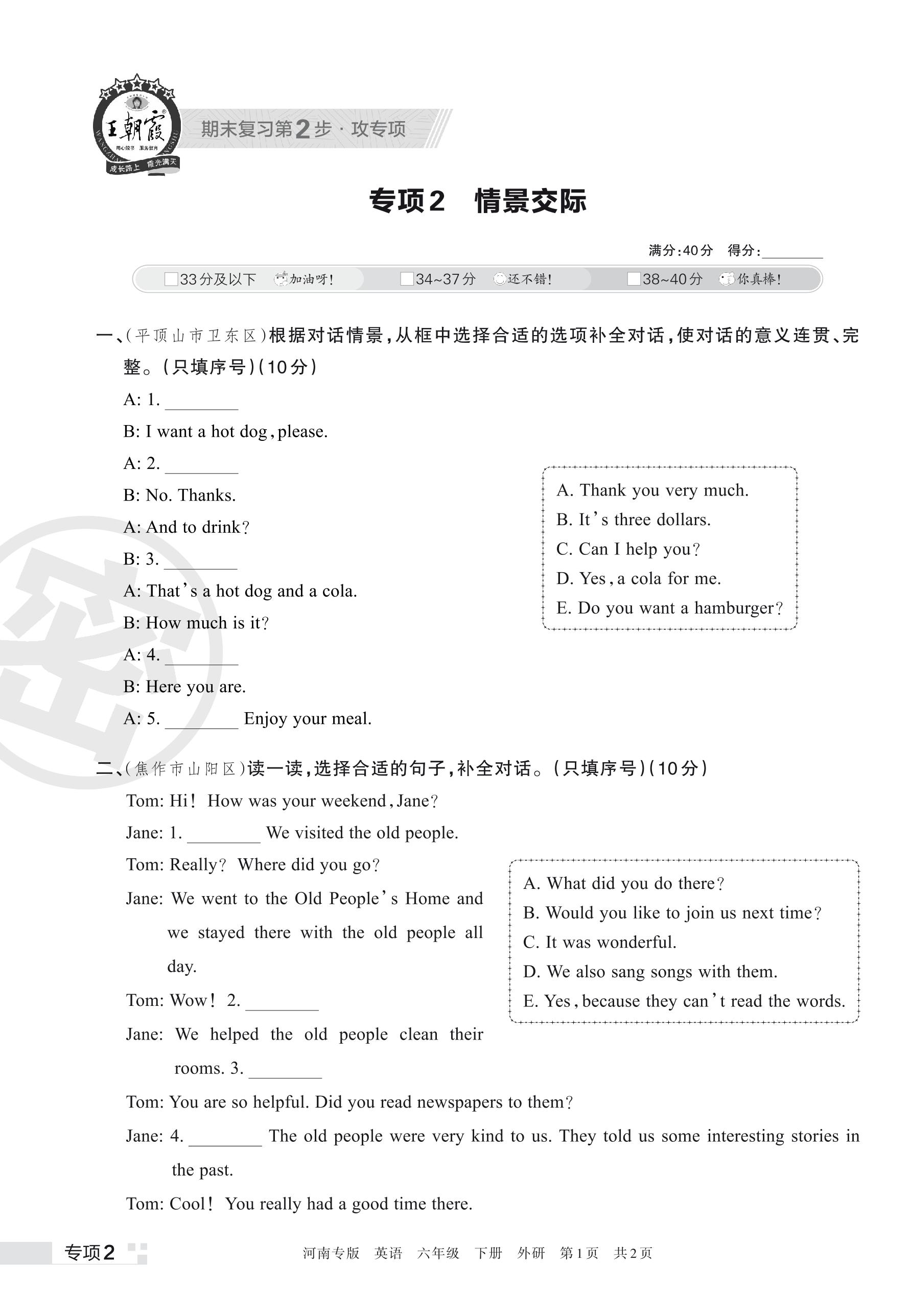 王朝霞期末专项卷——情景交际六年级下册英语(外研版)_R230428143222434【2】