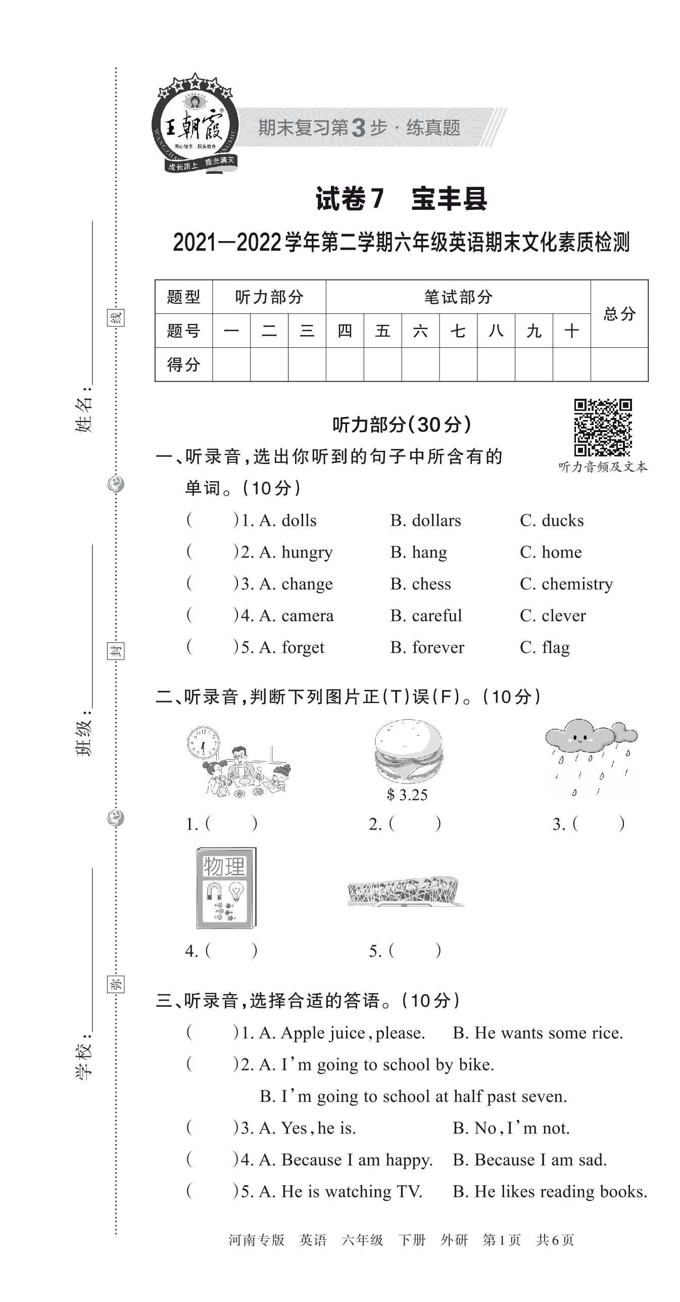 宝丰县2021—2022学年第二学期六年级英语期末文化素质检测(外研版)【7】