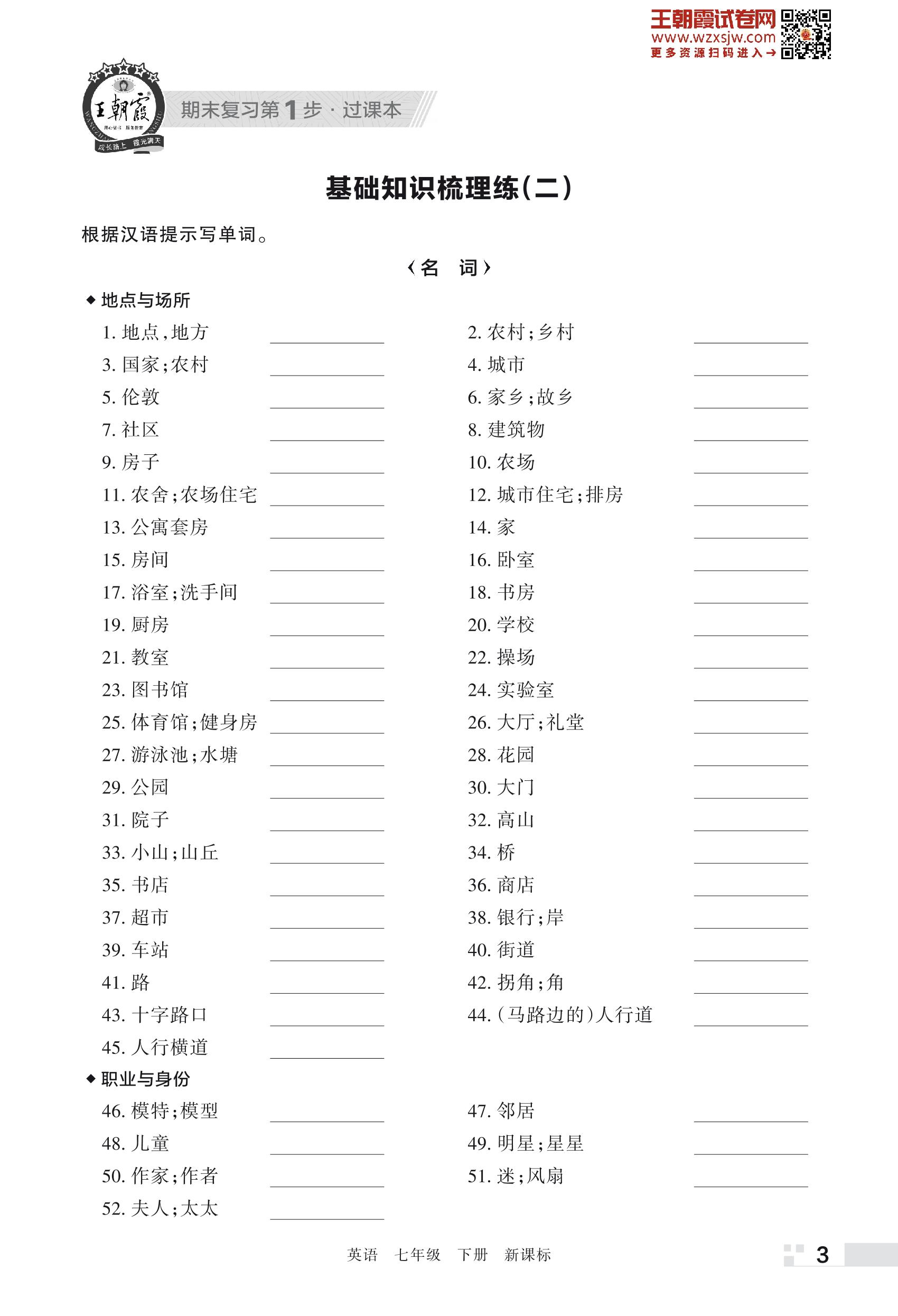 王朝霞期末过课本——基础知识梳理练(二)七年级下册英语(新课标版)_R230428144837317