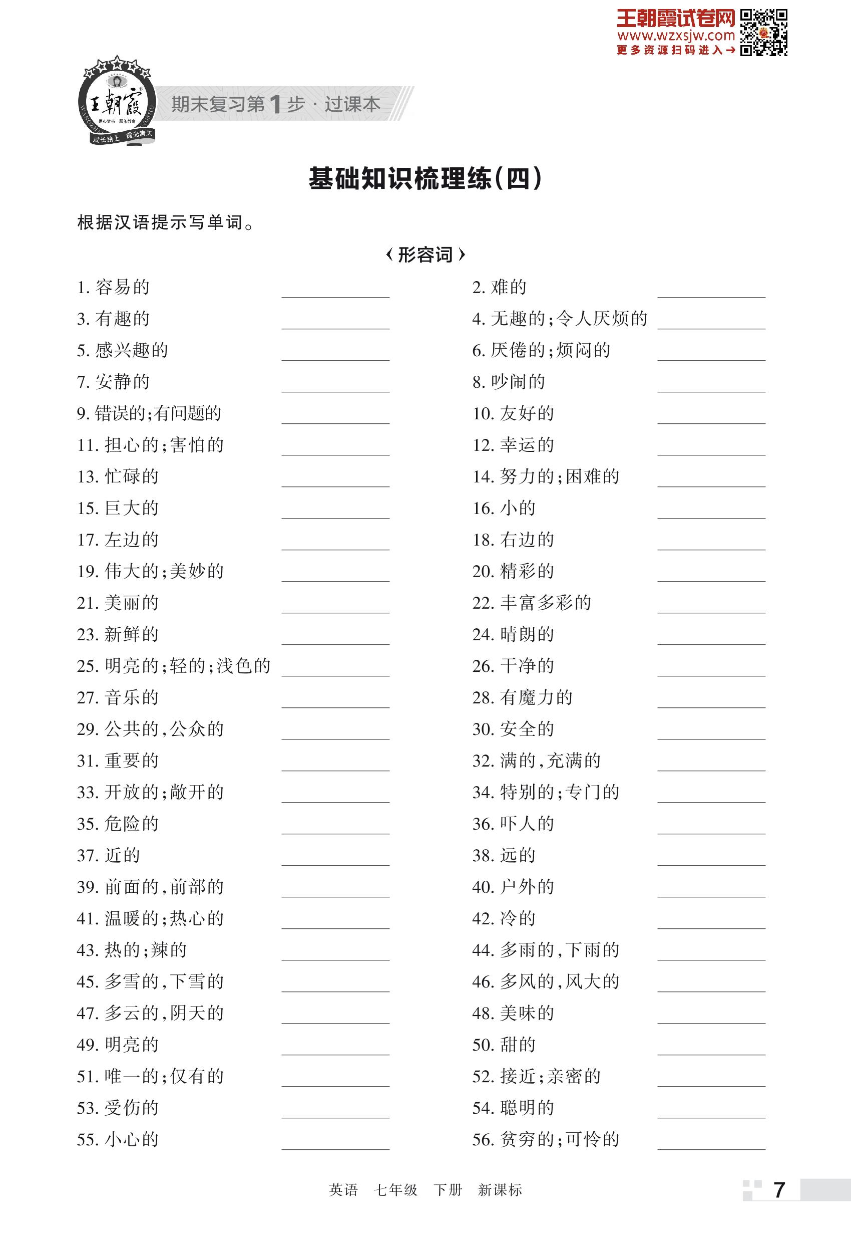 王朝霞期末过课本——基础知识梳理练(四)七年级下册英语(新课标版)_R230428144838691