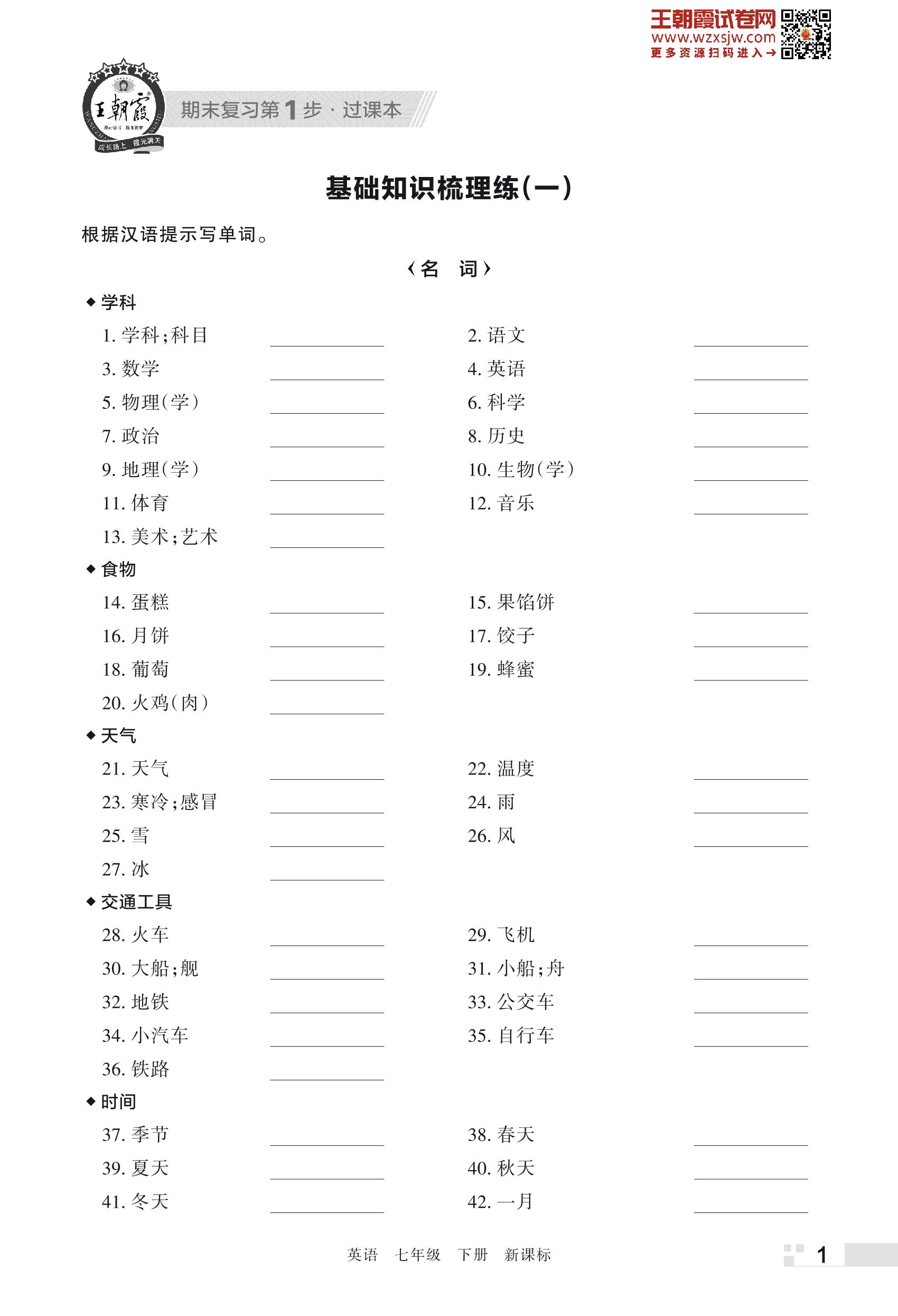 王朝霞期末过课本——基础知识梳理练(一)七年级下册英语(新课标版)_R230428144838951