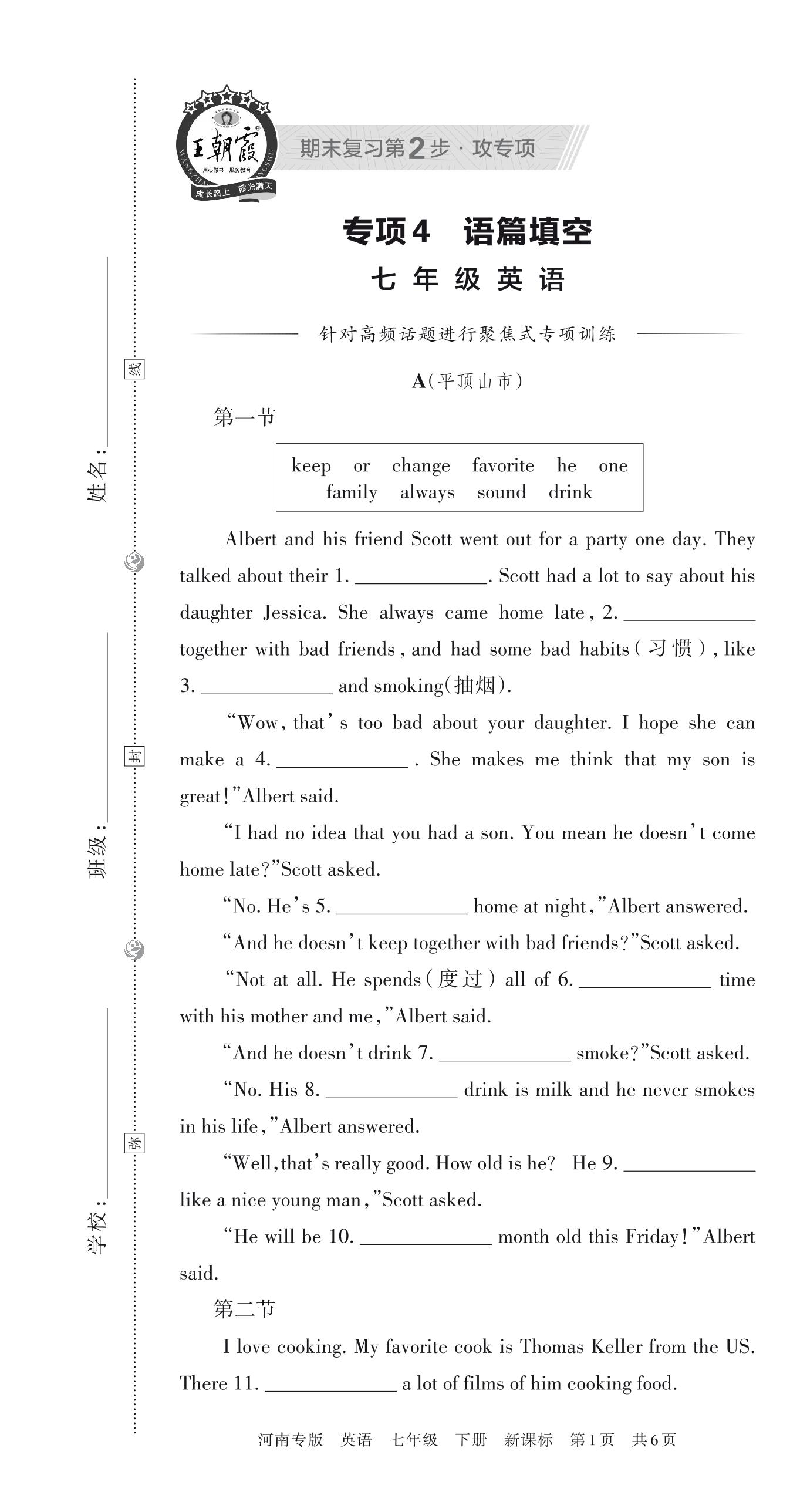 王朝霞期末专项卷——语篇填空七年级下册英语(新课标版)_R230428144838211【4】