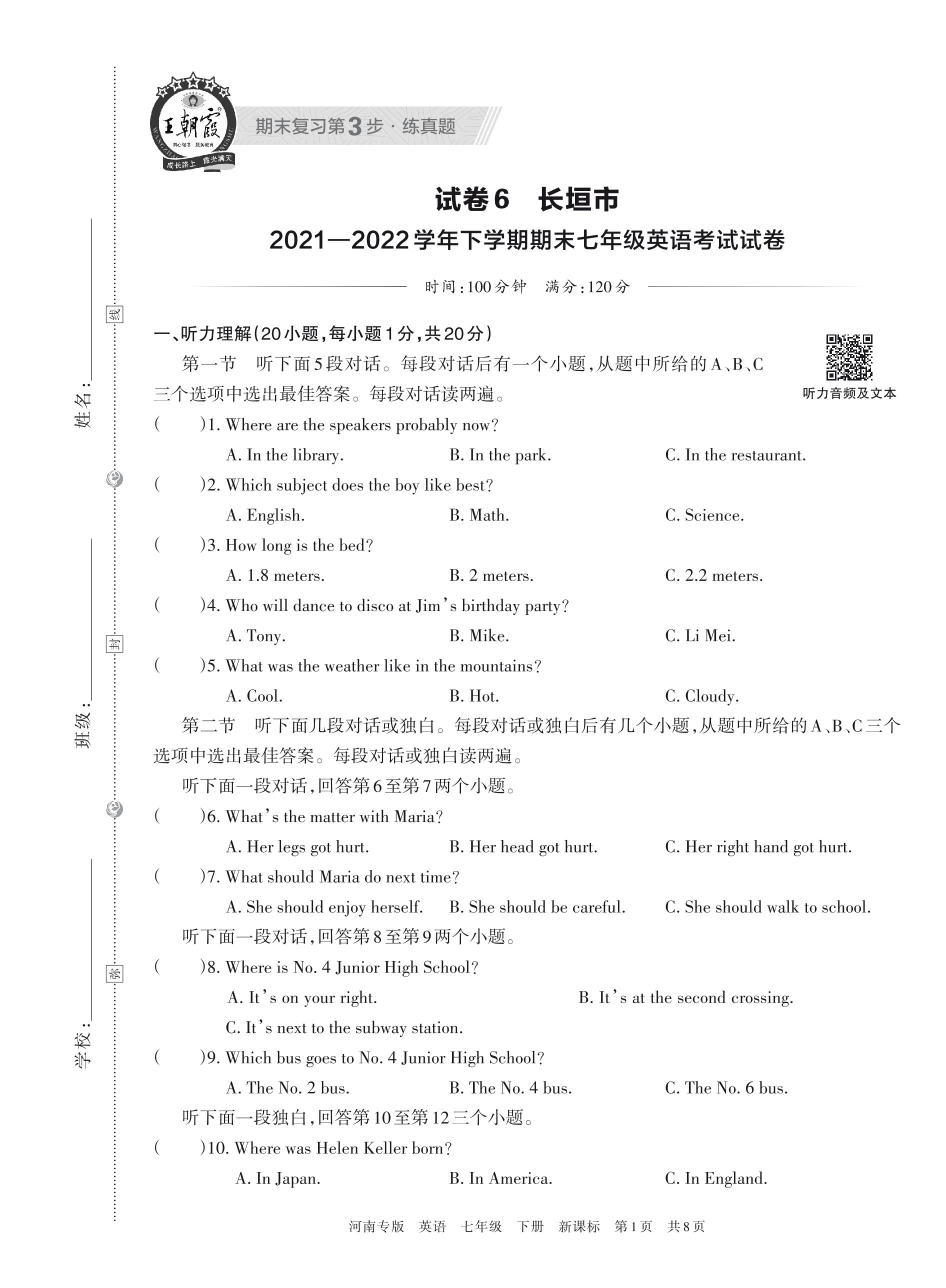 长垣市2021—2022学年下学期期末七年级英语考试试卷(新课标版)【6】