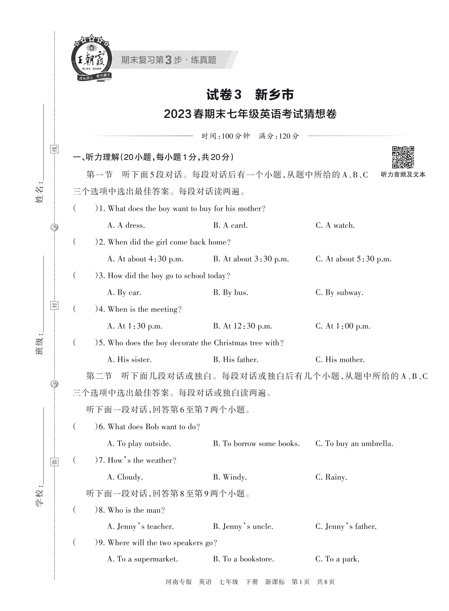 新乡市2023春期末七年级英语考试猜想卷(新课标版)【3】