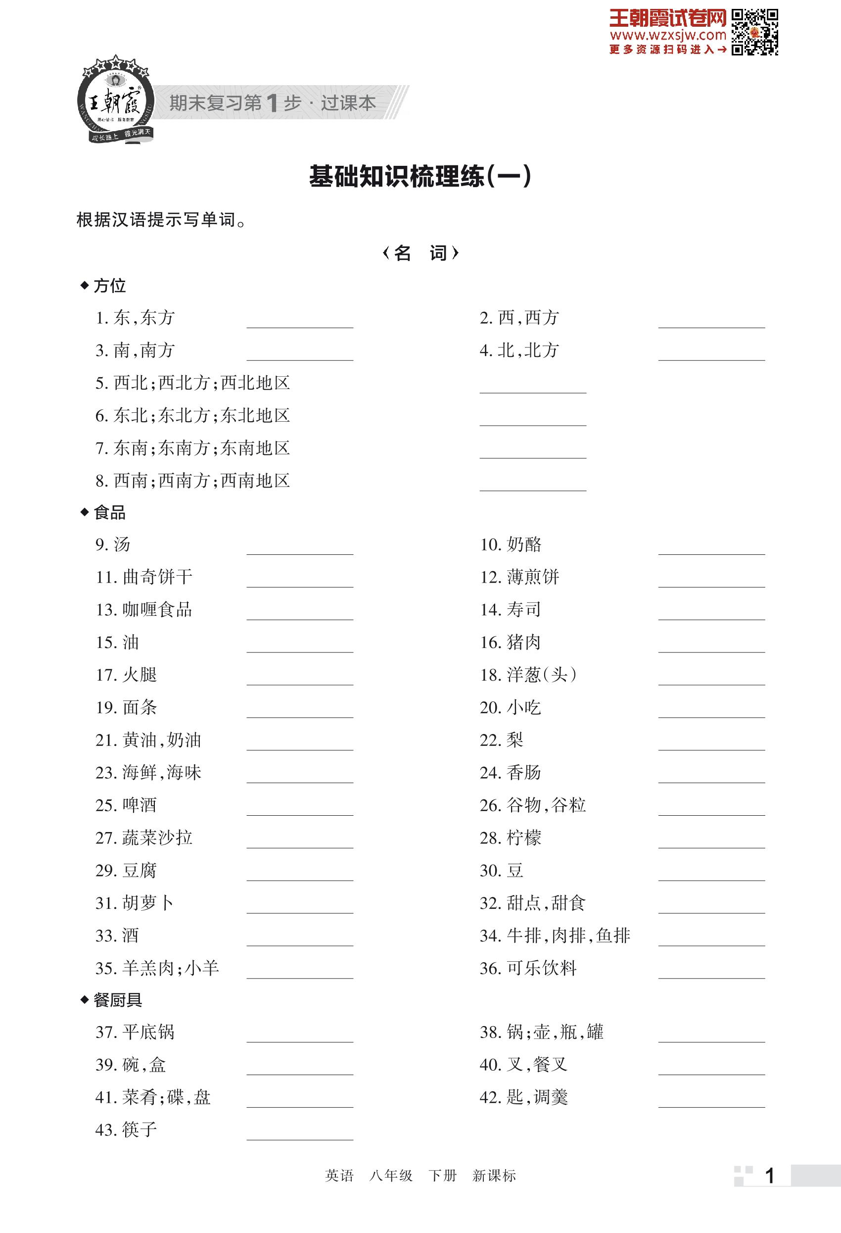 王朝霞期末过课本——基础知识梳理练(一)八年级下册英语(新课标版)_R230428145740522