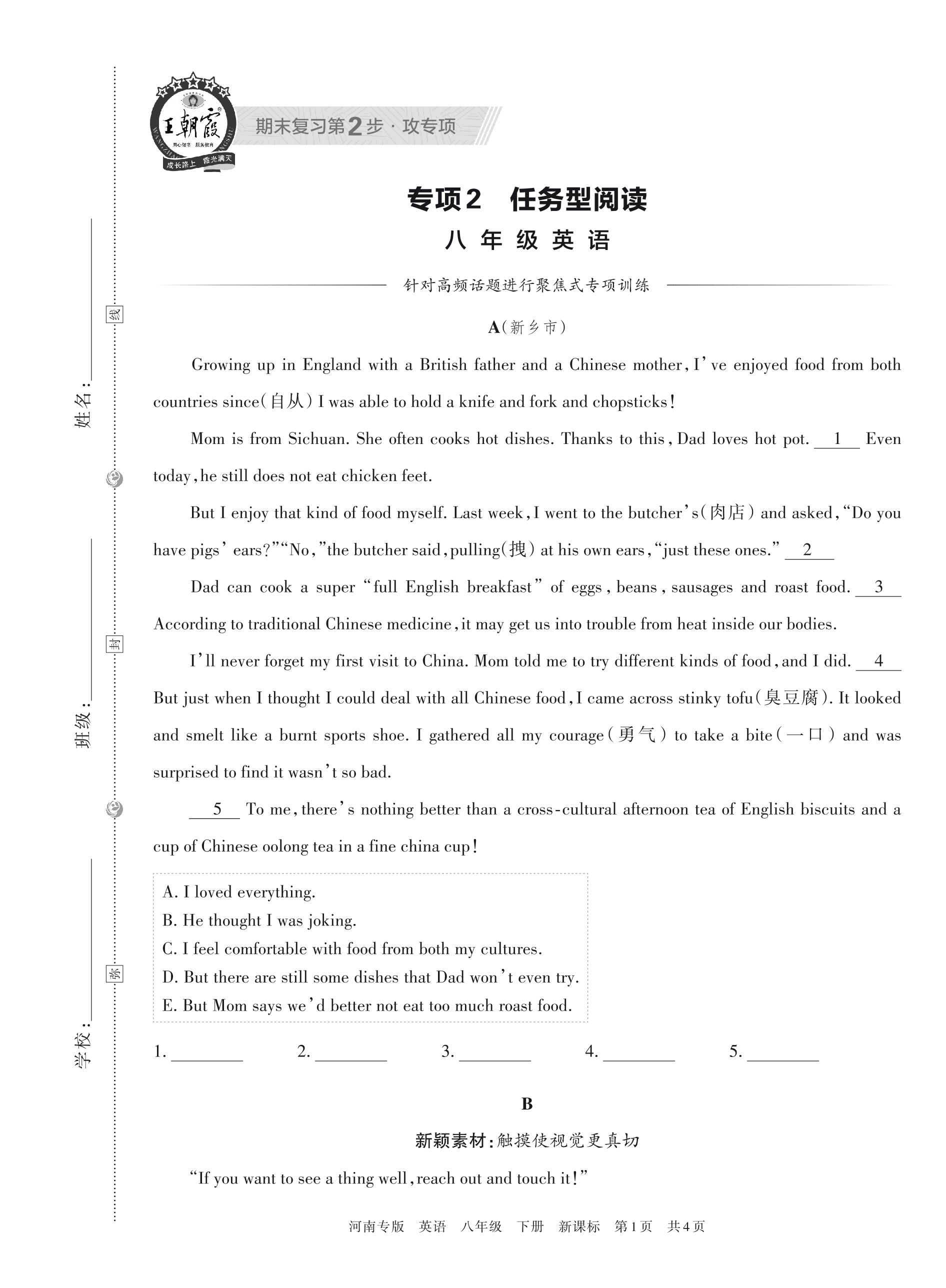 王朝霞期末专项卷——任务型阅读八年级下册英语(新课标版)_R230428145741339【2】