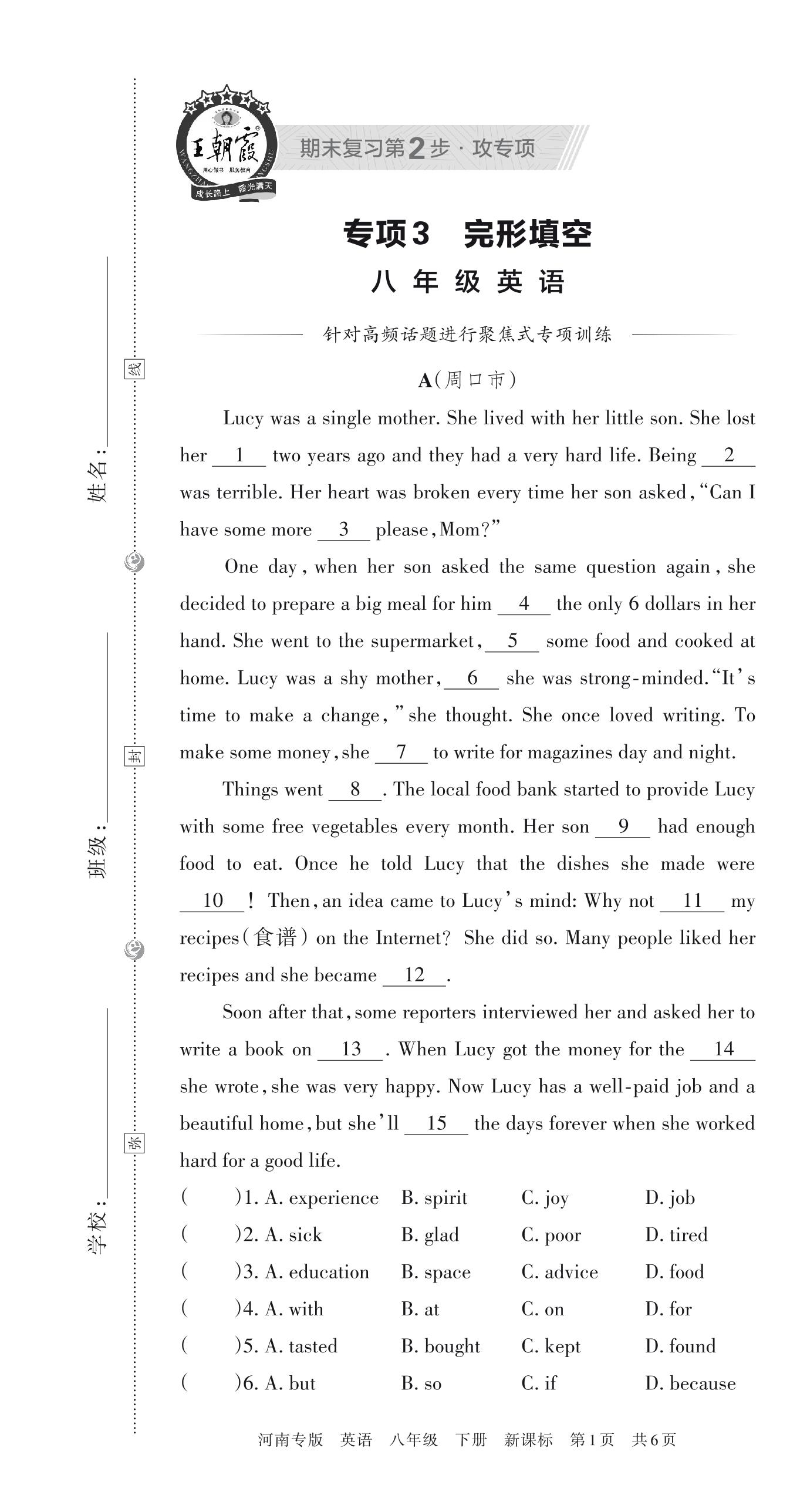 王朝霞期末专项卷——完形填空八年级下册英语(新课标版)_R230428145741100【3】