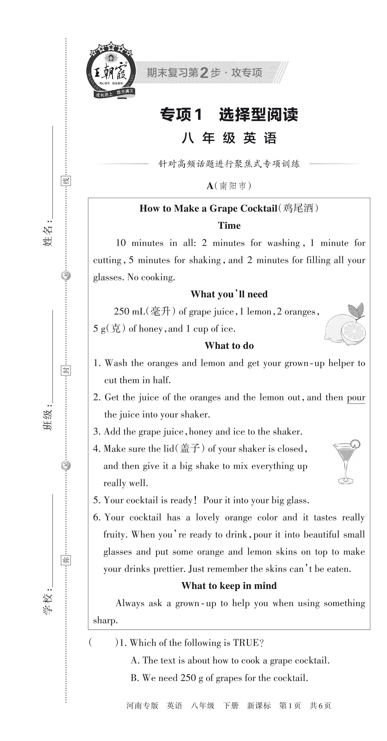 王朝霞期末专项卷——选择型阅读八年级下册英语(新课标版)_R230428145741911【1】