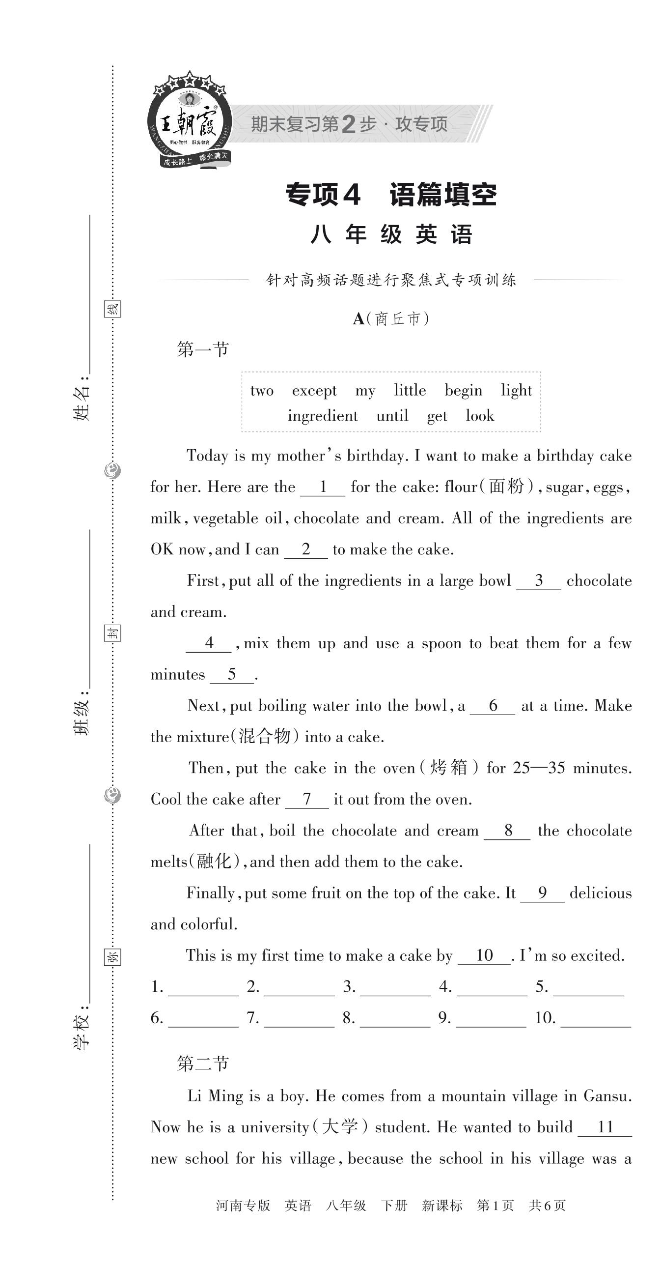 王朝霞期末专项卷——语篇填空八年级下册英语(新课标版)_R230428145741745【4】