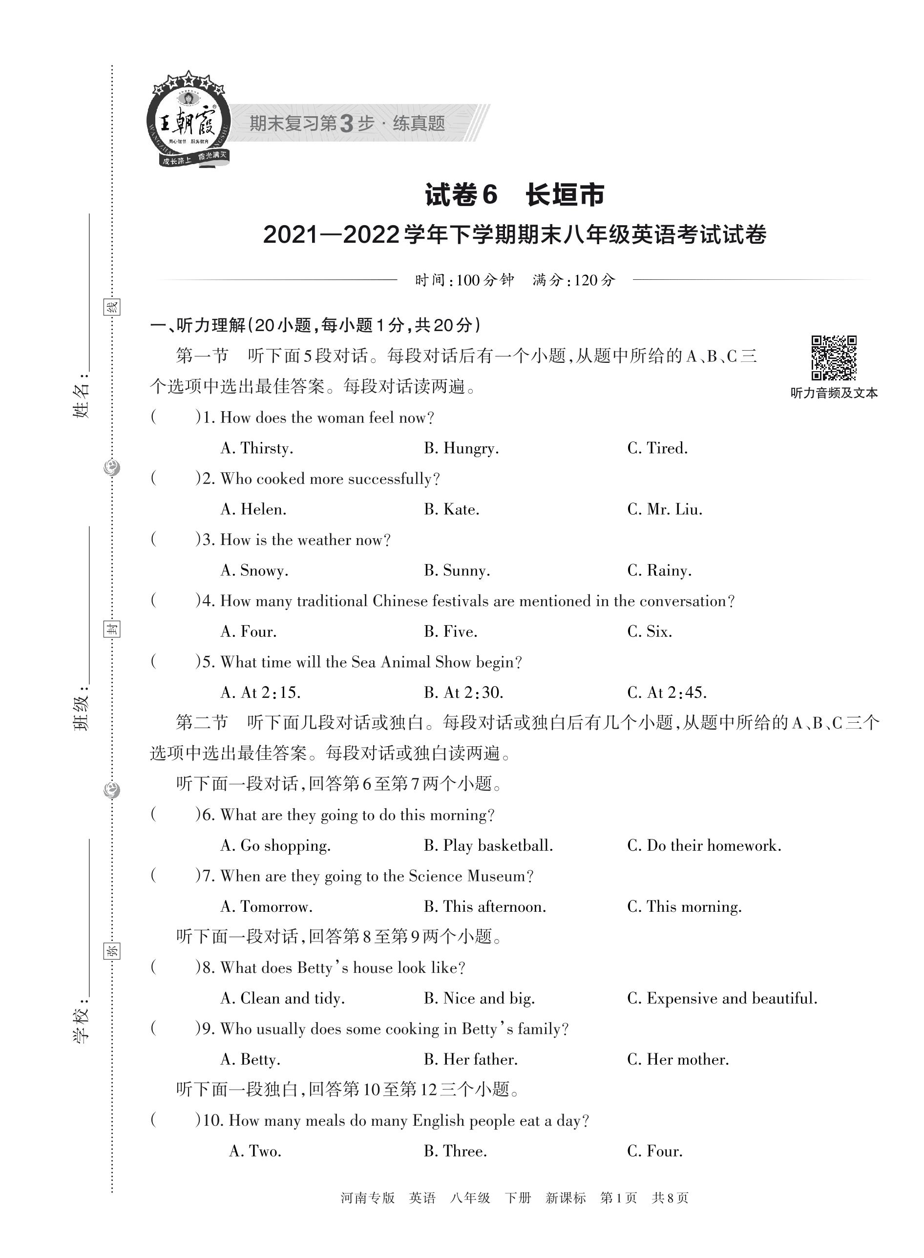 长垣市2021—2022学年下学期期末八年级英语考试试卷(新课标版)【6】