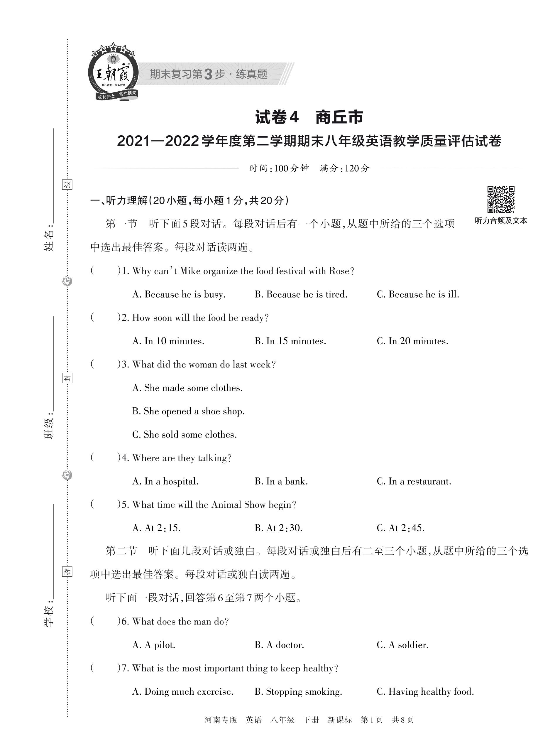 商丘市2021—2022学年度第二学期期末八年级英语教学质量评估试卷(新课标版)【4】