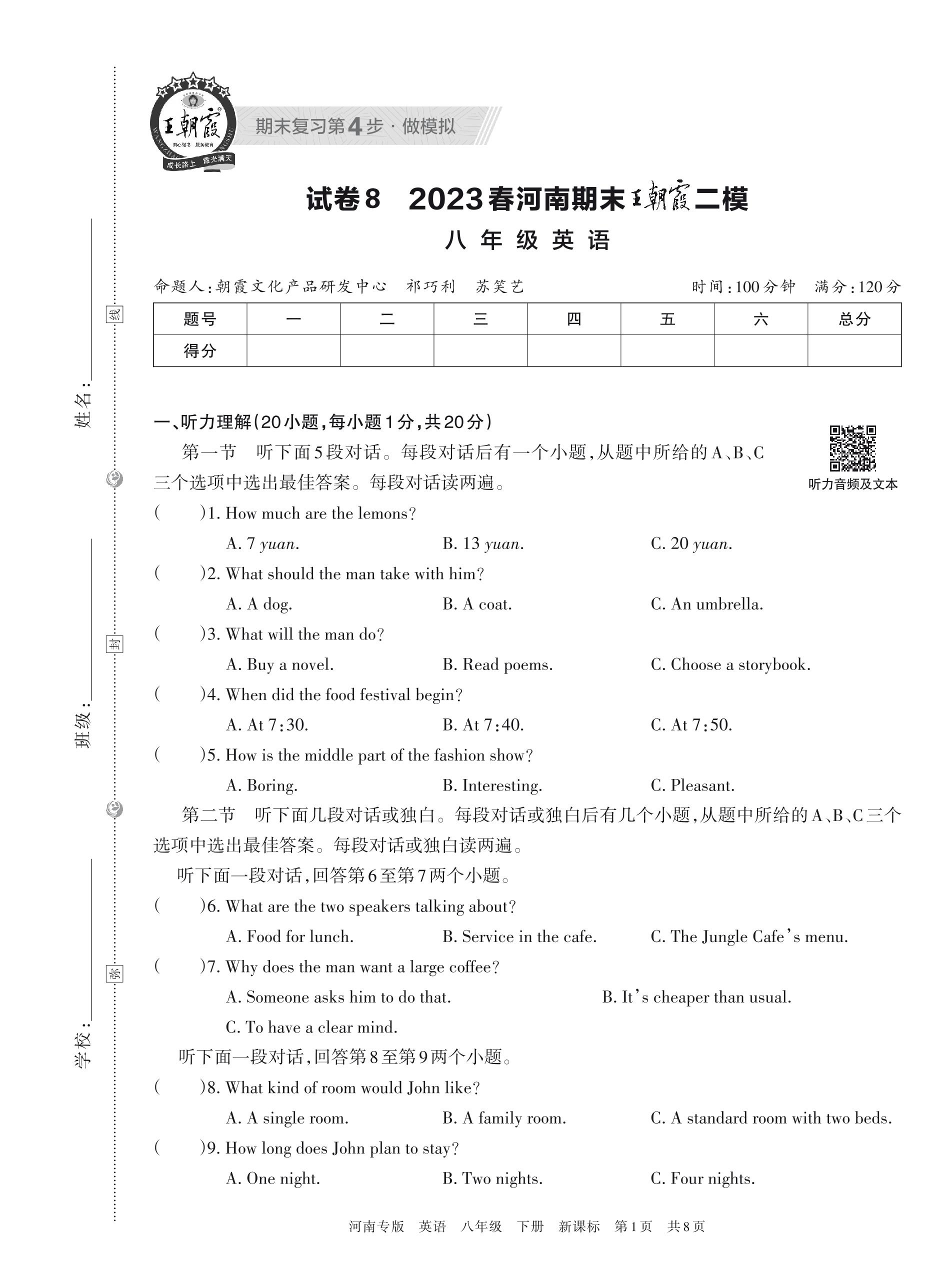 王朝霞期末模拟卷八年级下册英语(新课标版)_R230428145742125【8】