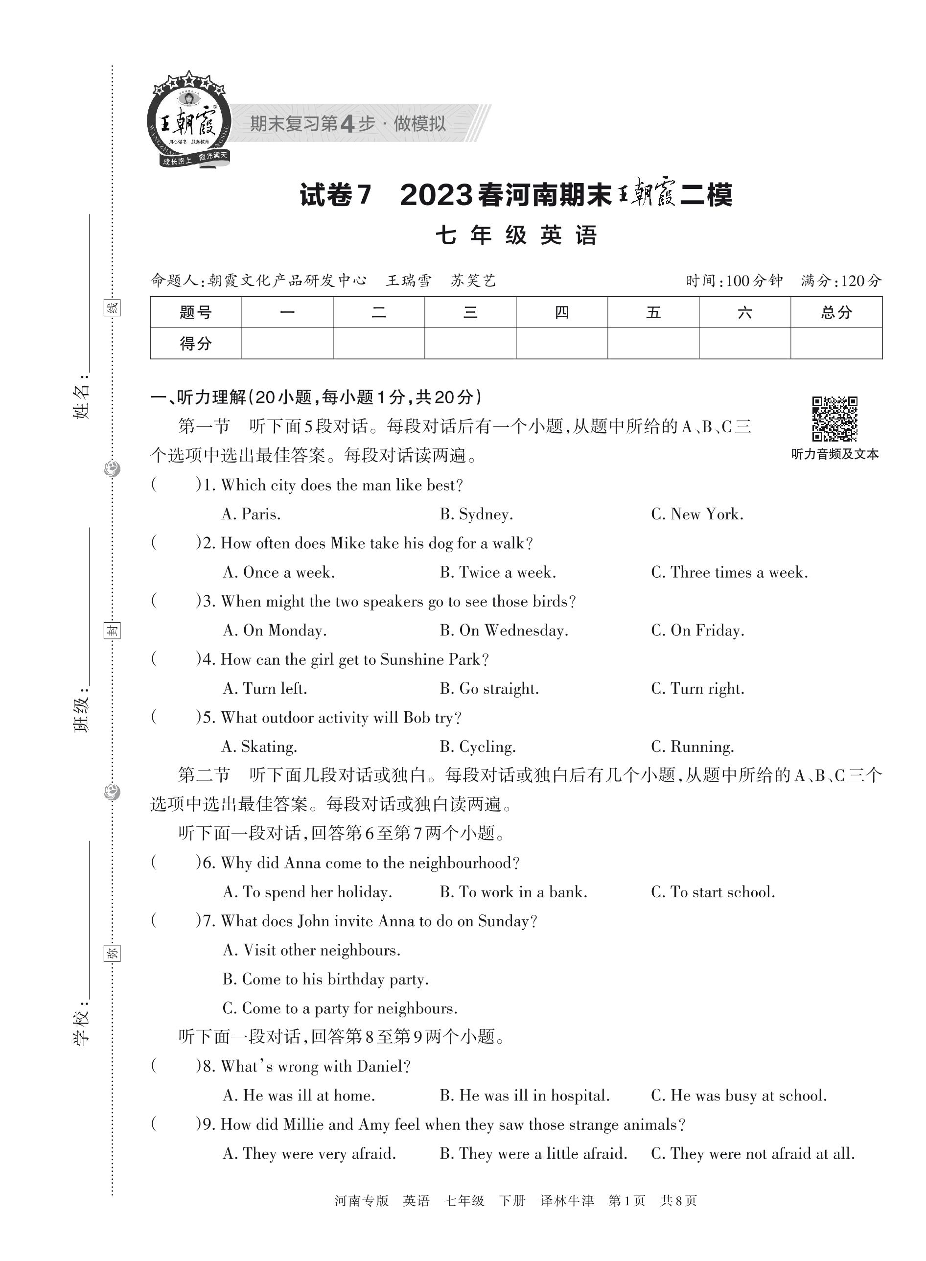 王朝霞期末模拟卷七年级下册英语(译林牛津版)_R230428150550147【7】