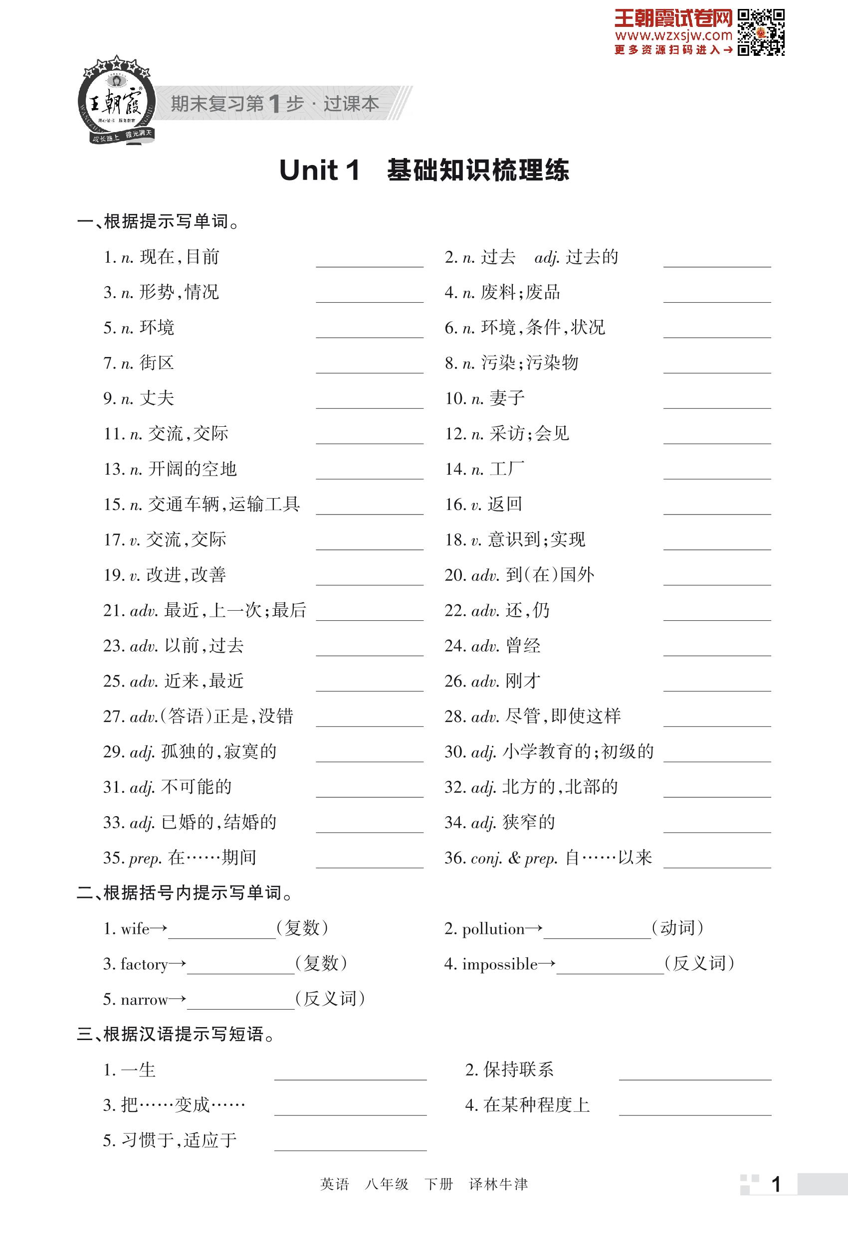 王朝霞期末过课本——Unit 1 基础知识梳理练八年级下册英语(译林牛津版)_R230428151257673