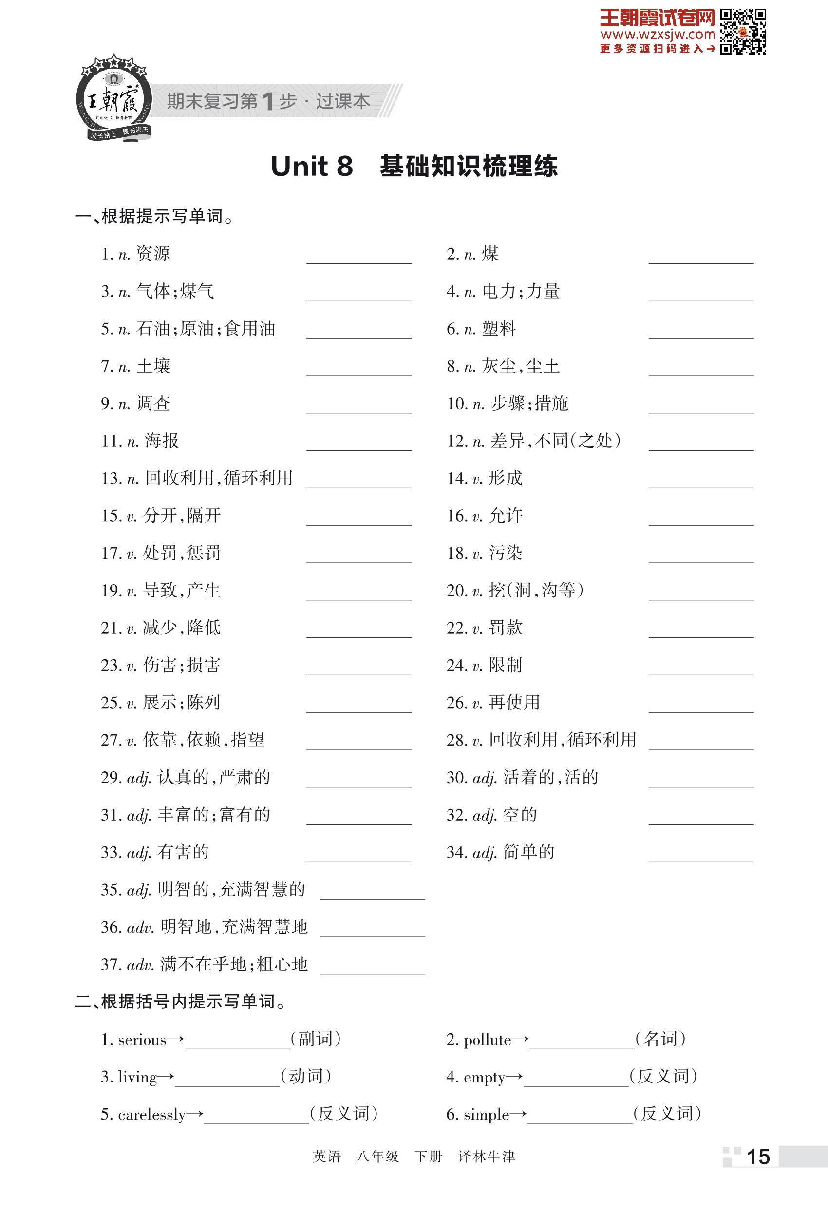 王朝霞期末过课本——Unit 8 基础知识梳理练八年级下册英语(译林牛津版)_R230428151258591