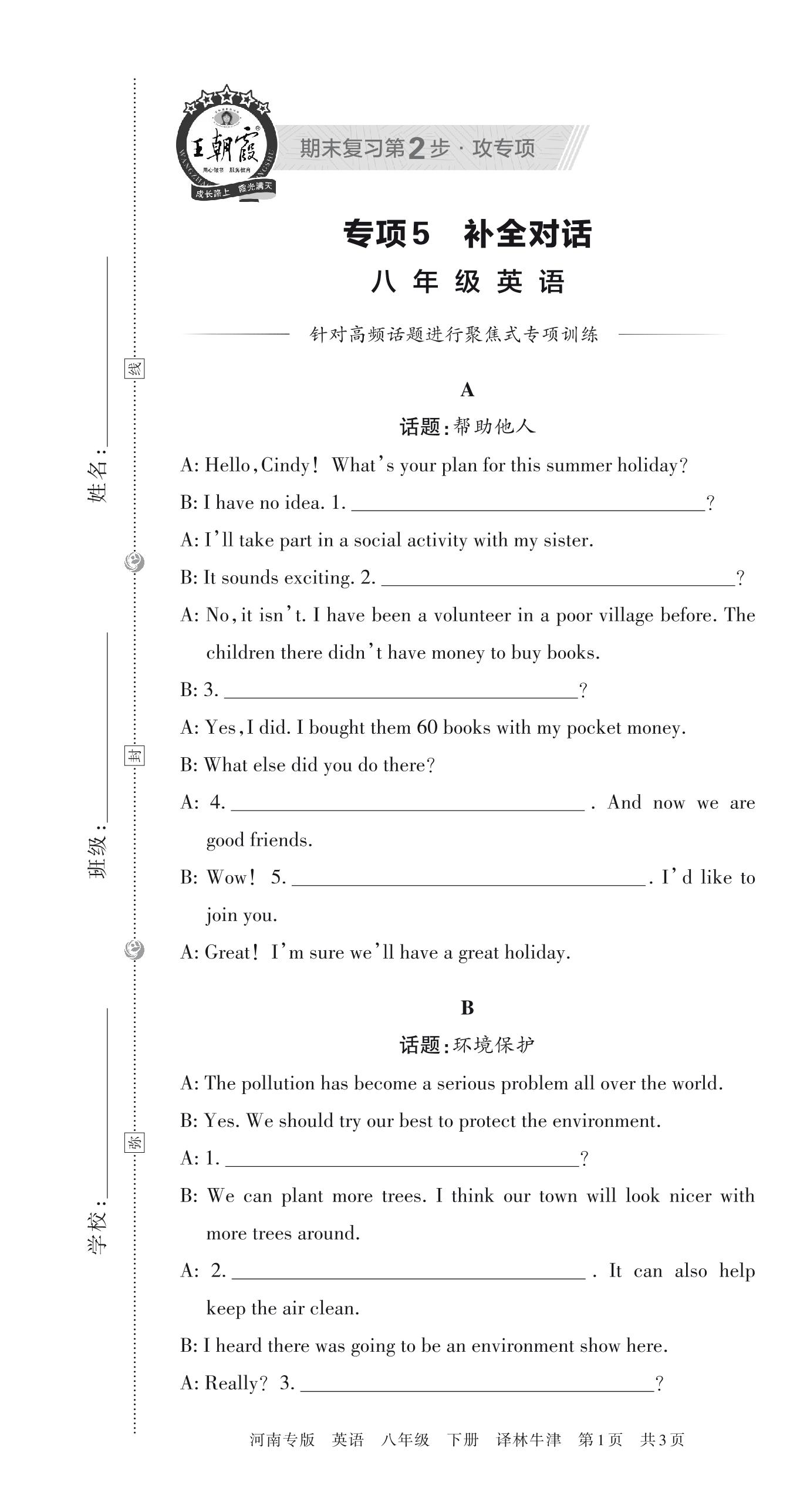 王朝霞期末专项卷——补全对话八年级下册英语(译林牛津版)_R230428151258383【5】