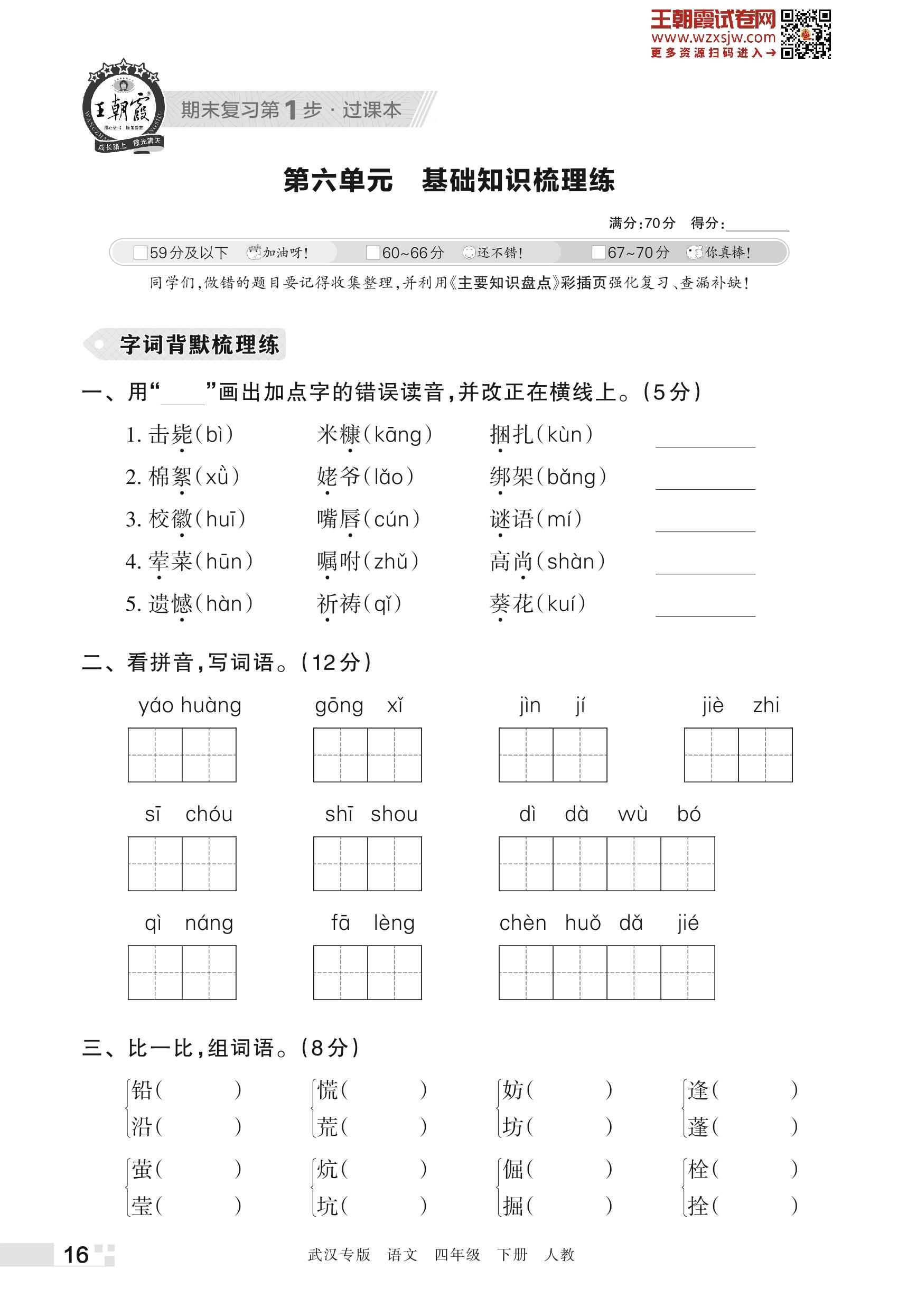 王朝霞期末过课本——第六单元 基础知识梳理练四年级下册语文(人教版)_R230428151834225