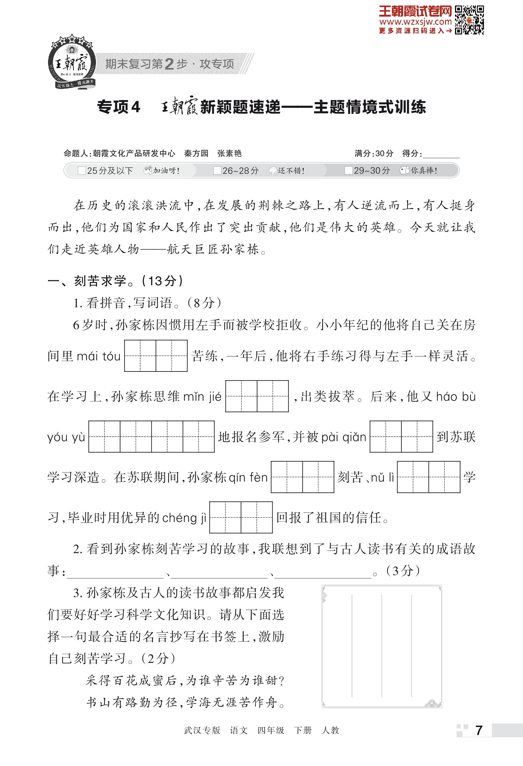 王朝霞期末专项卷——新颖题速递:主题情境式训练四年级下册语文(人教版)_R230428151834302【4】
