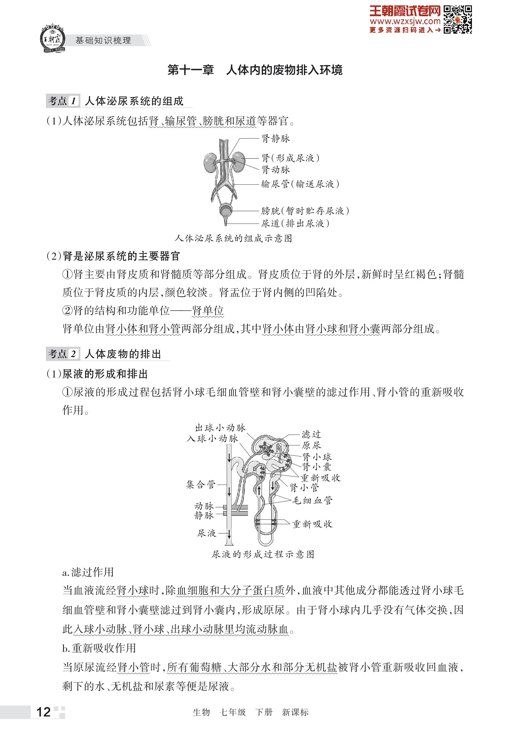 王朝霞期末知识梳理——第十一章 人体内的废物排入环境七年级下册生物(新课标版)
