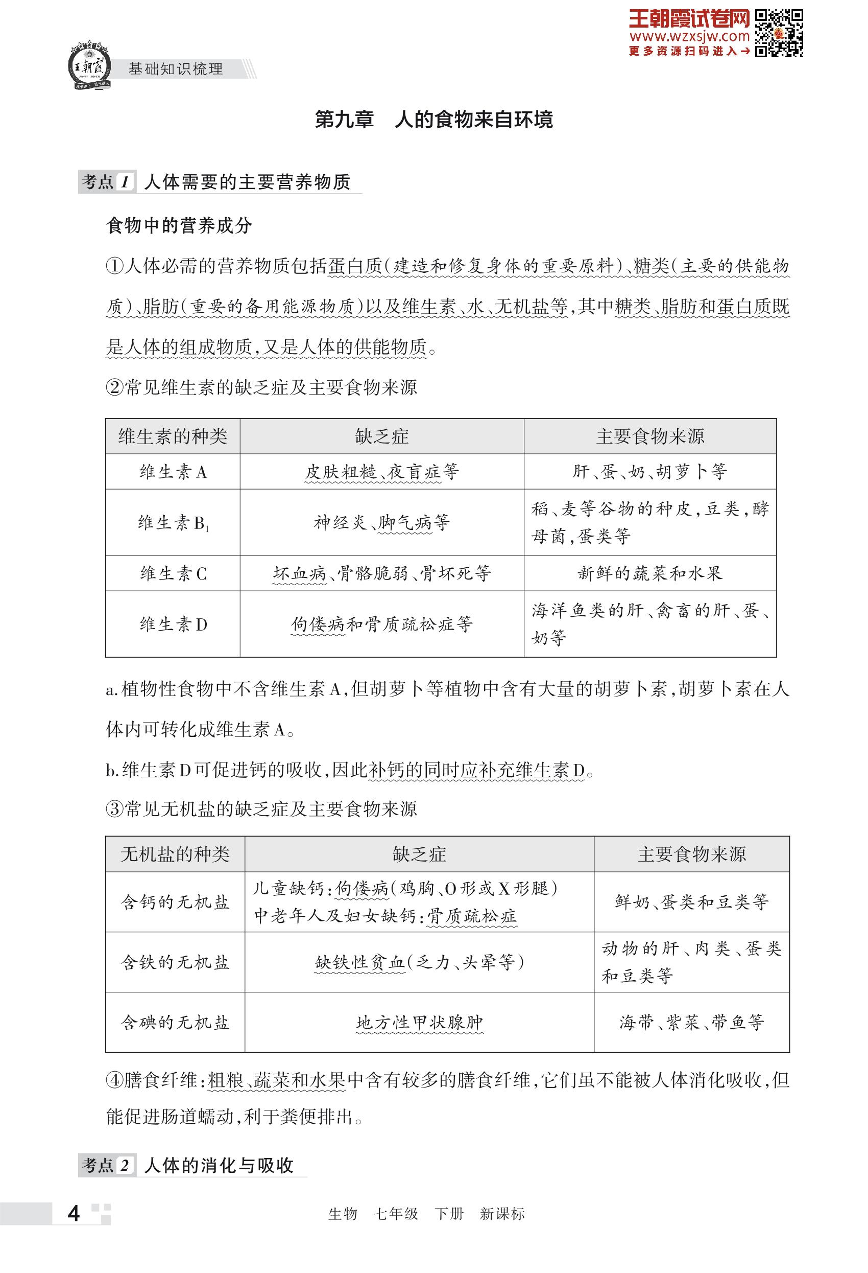 王朝霞期末知识梳理——第九章 人的食物来自环境七年级下册生物(新课标版)