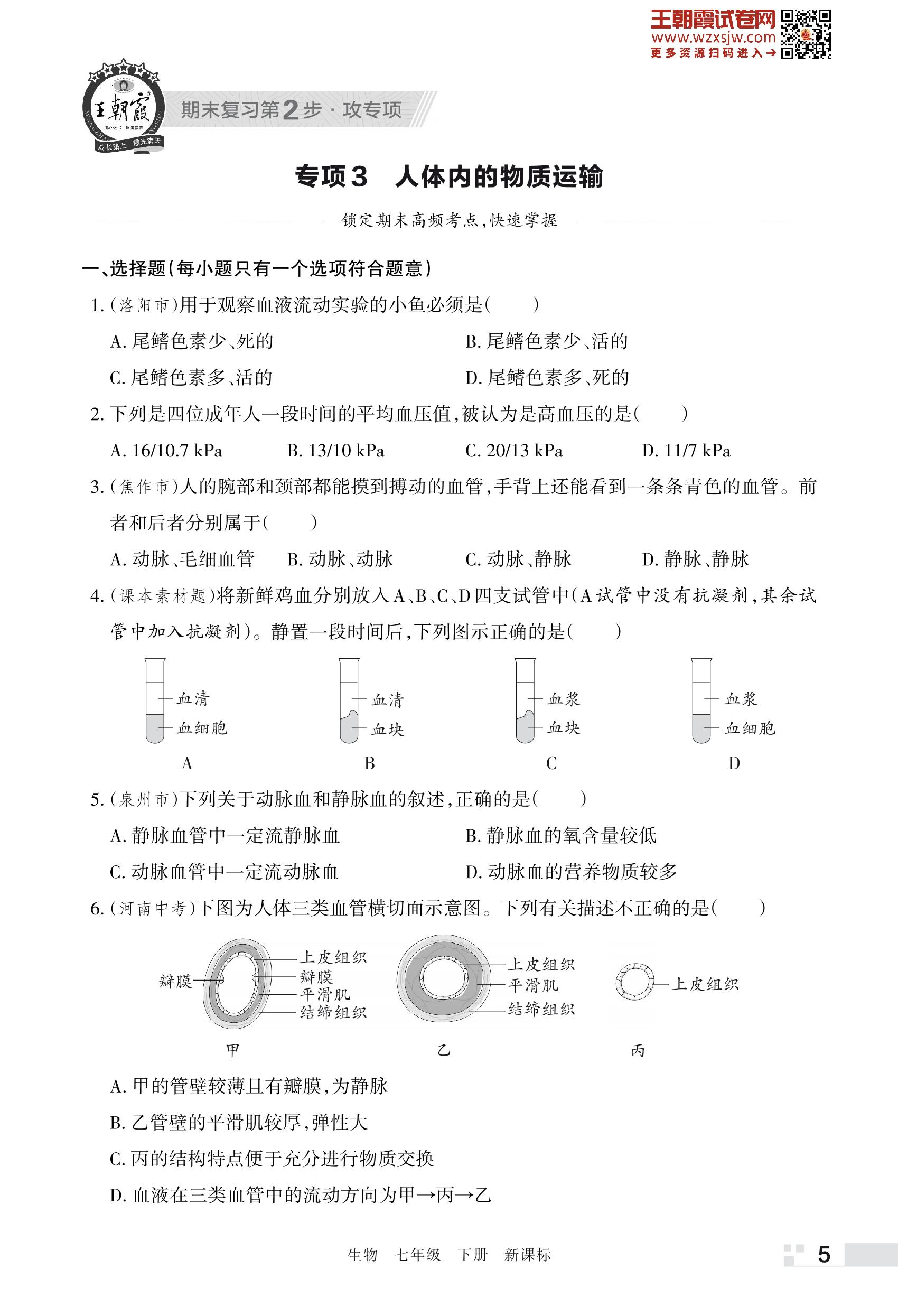 王朝霞期末专项卷——人体内的物质运输七年级下册生物(新课标版)_R230428151955990【3】