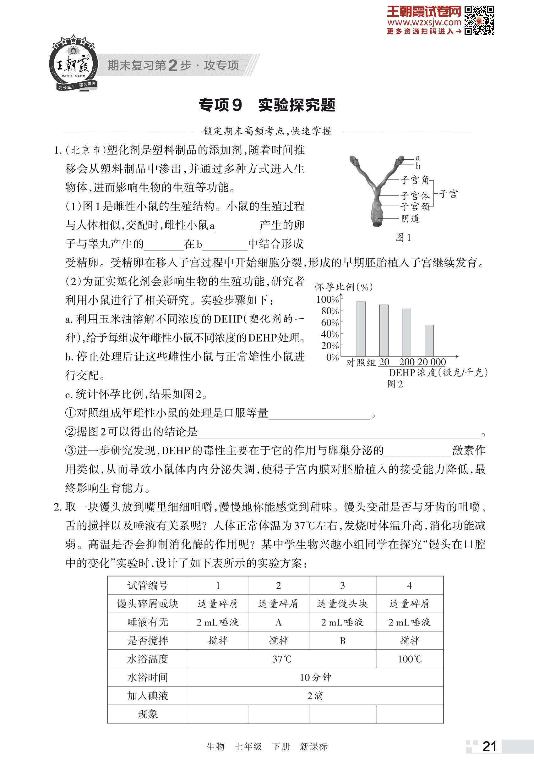 王朝霞期末专项卷——实验探究题七年级下册生物(新课标版)_R230428151955454【9】