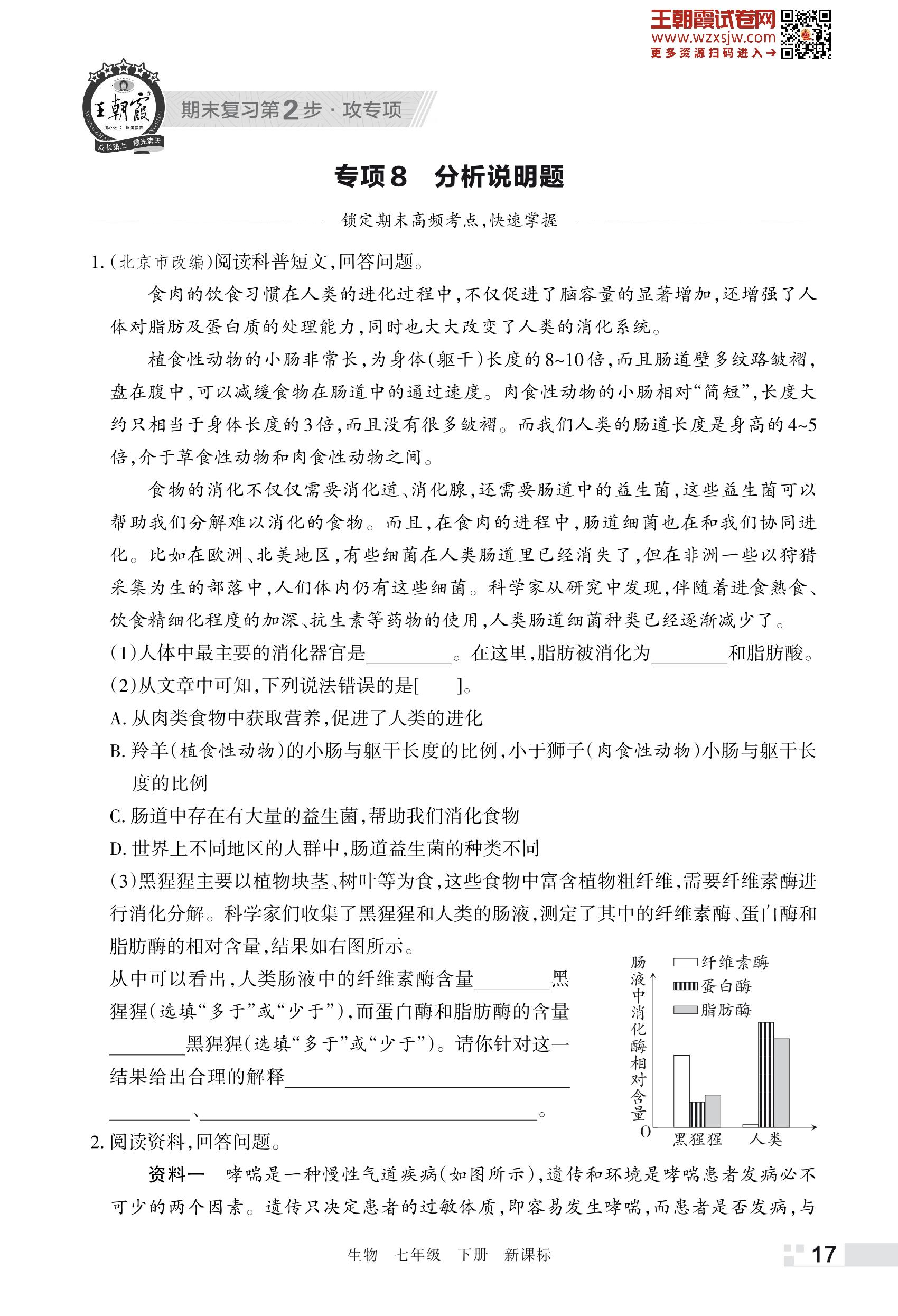 王朝霞期末专项卷——分析说明题七年级下册生物(新课标版)_R230428151956231【8】