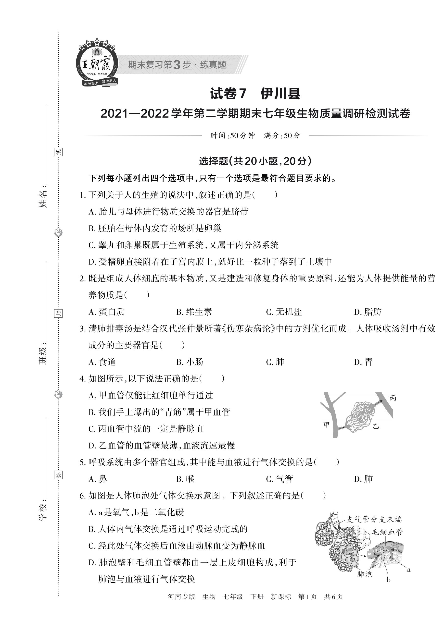 伊川县2021—2022学年第二学期期末七年级生物质量调研检测试卷(新课标版)【7】