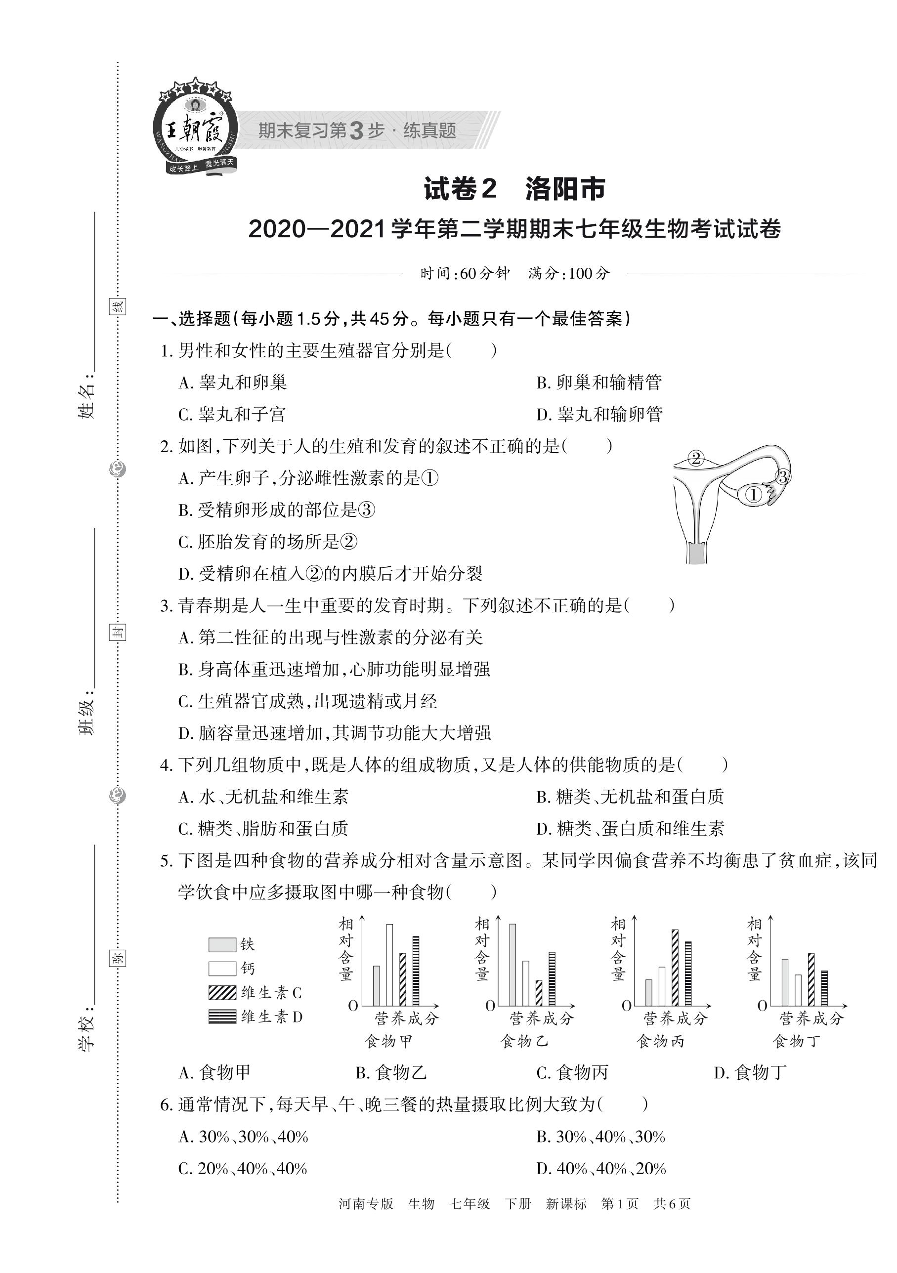 洛阳市2020—2021学年第二学期期末七年级生物考试试卷(新课标版)【2】