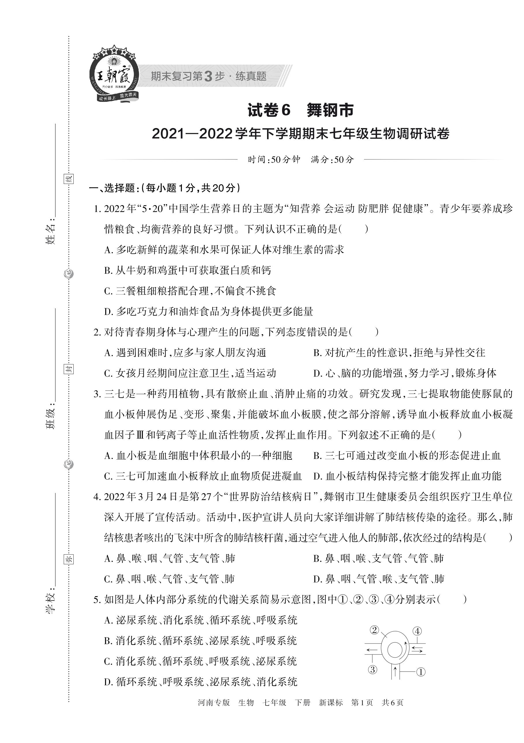 舞钢市2021—2022学年下学期期末七年级生物调研试卷(新课标版)【6】