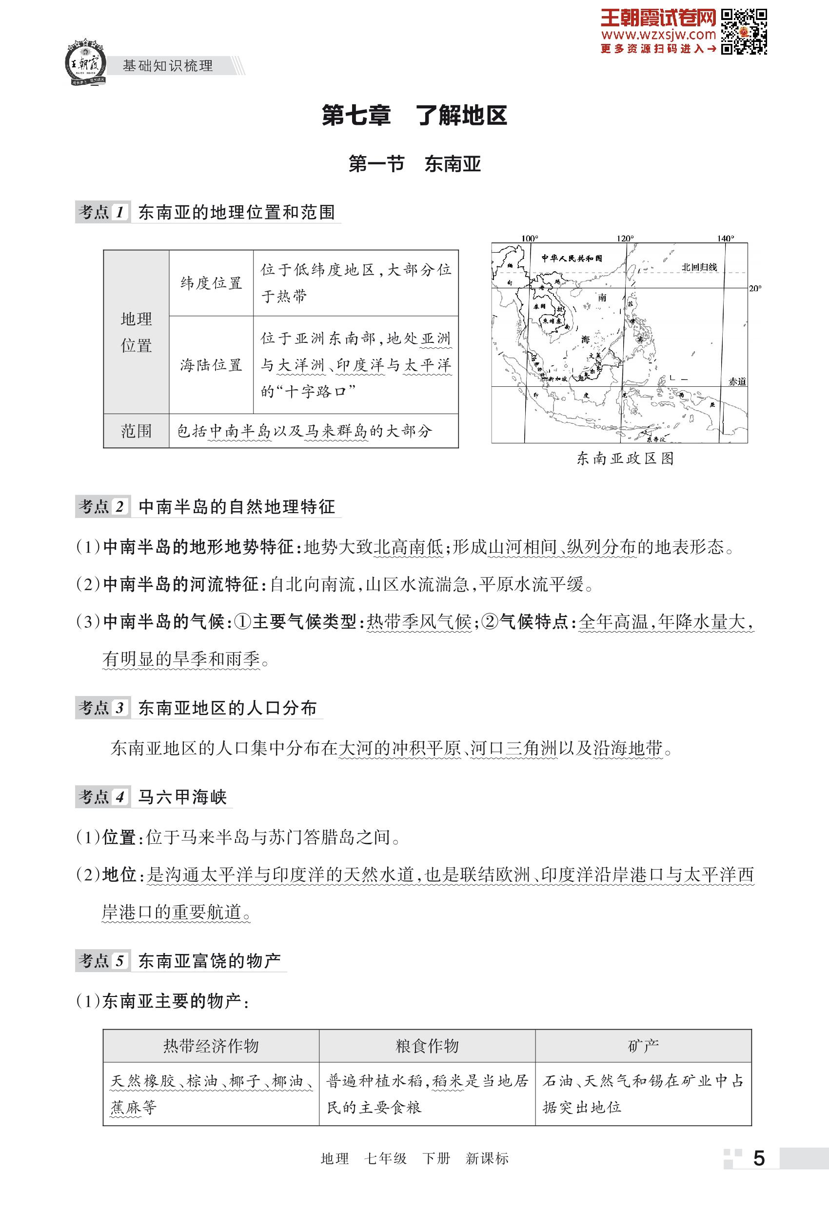 王朝霞期末知识梳理——第七章 了解地区七年级下册地理(新课标版)
