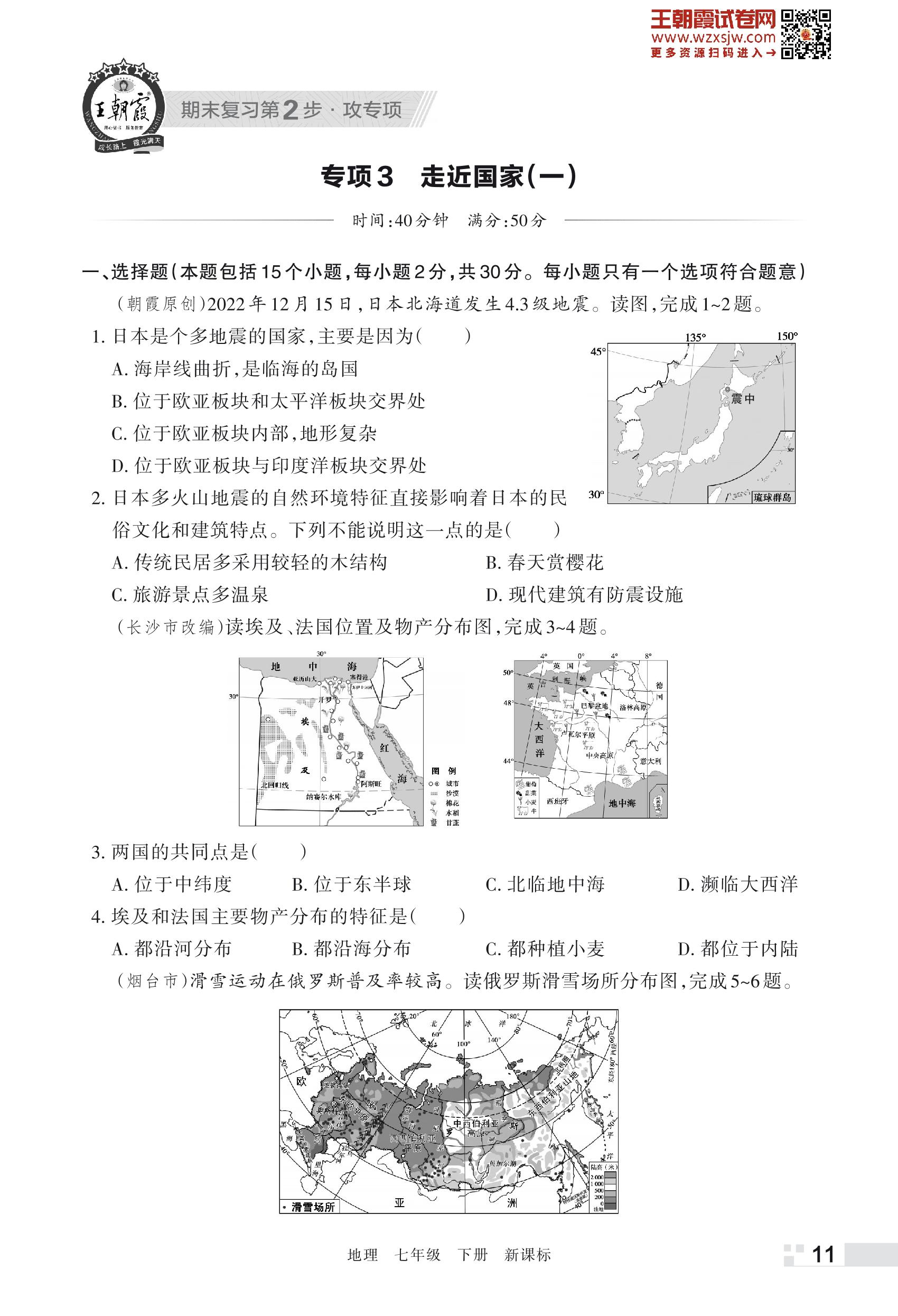 王朝霞期末专项卷——走进国家(一)七年级下册地理(新课标版)【3】